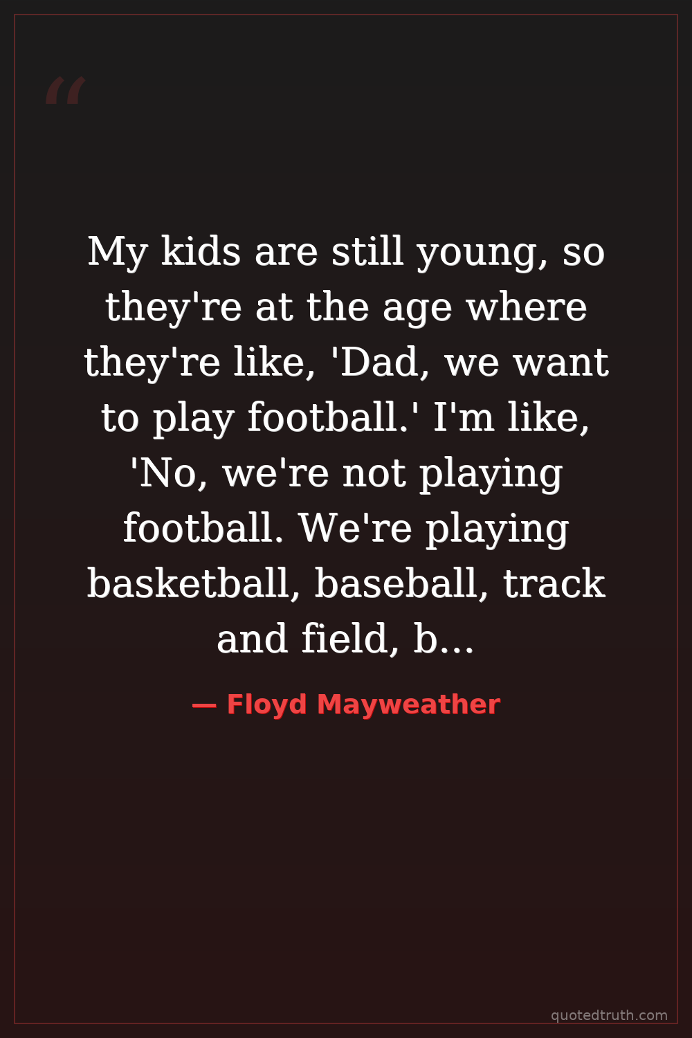 My kids are still young, so they're at the age where they're like, 'Dad, we want to play football.' I'm like, 'No, we're not playing football. We're playing basketball, baseball, track and field, boxing.'