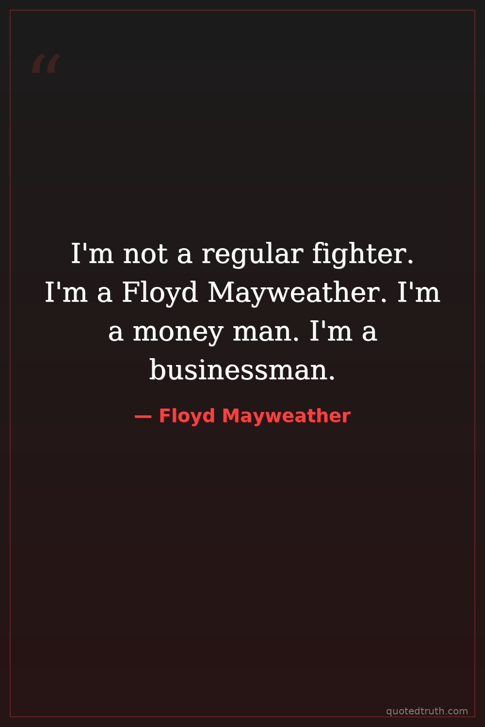 I'm not a regular fighter. I'm a Floyd Mayweather. I'm a money man. I'm a businessman.