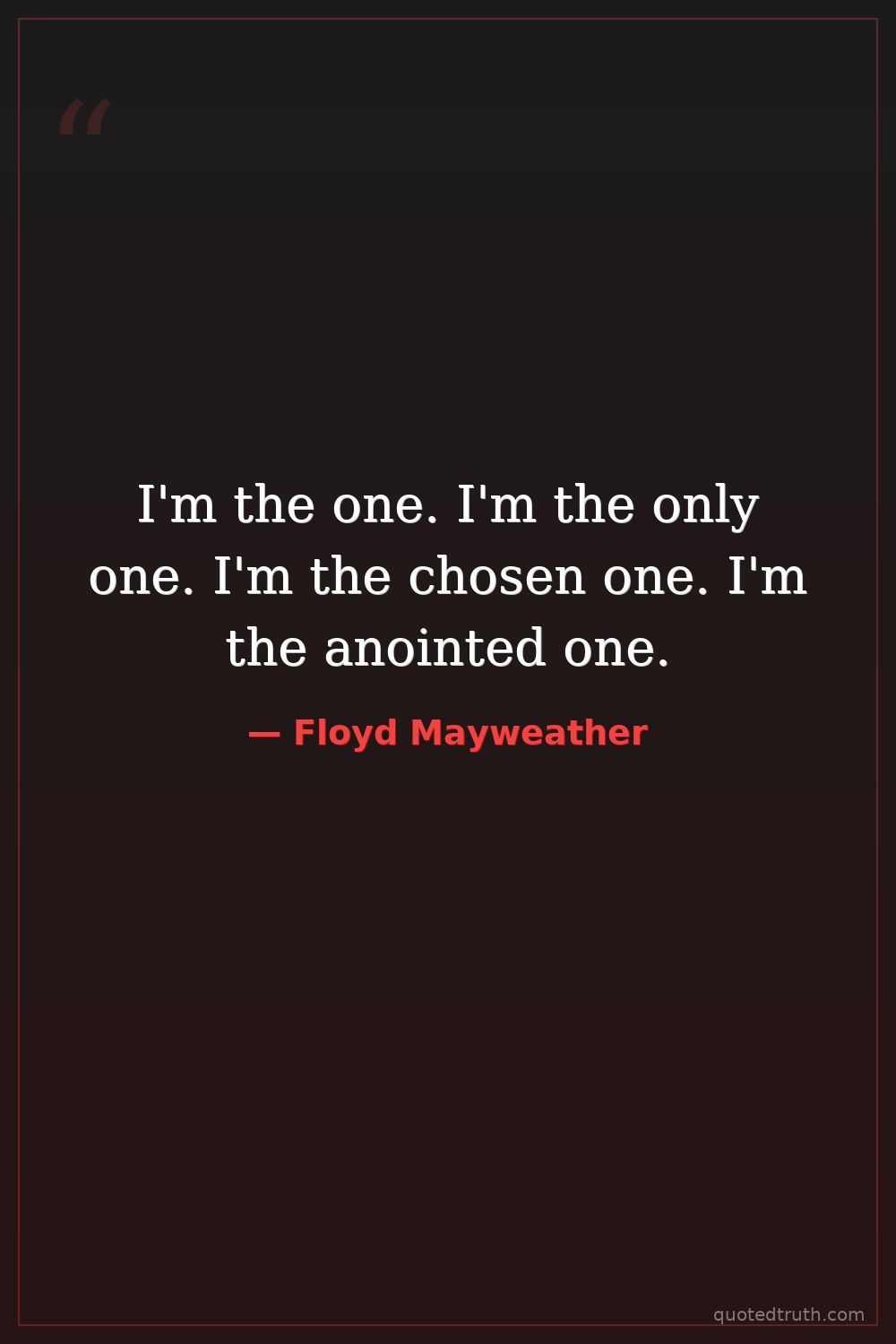 I'm the one. I'm the only one. I'm the chosen one. I'm the anointed one.