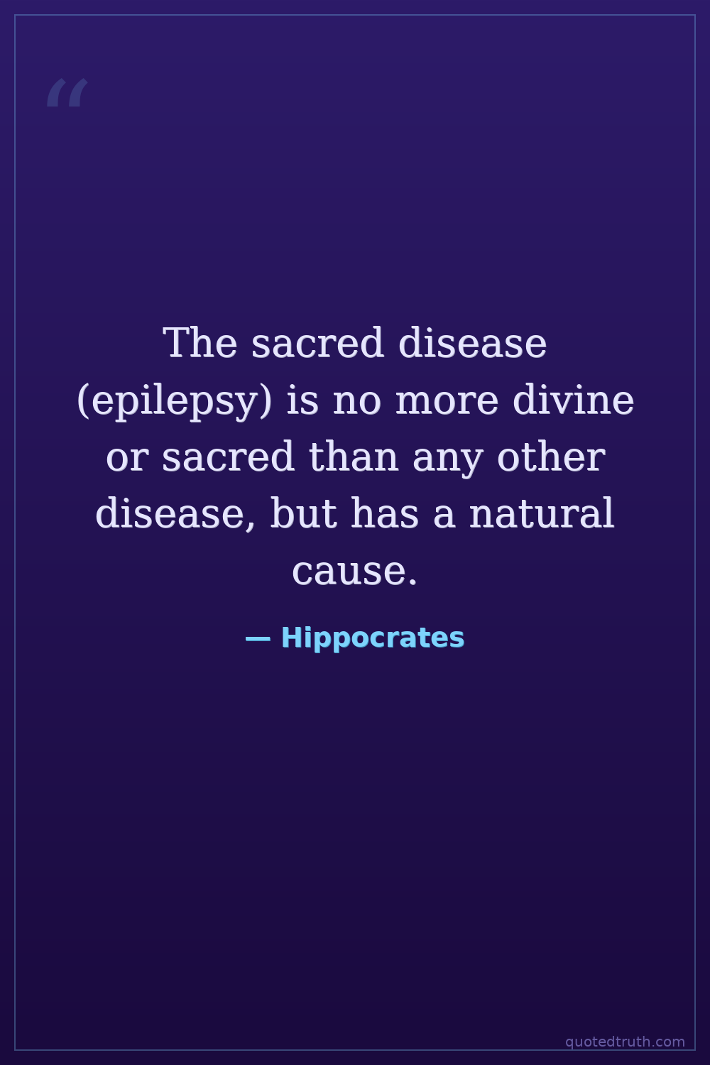 The sacred disease (epilepsy) is no more divine or sacred than any other disease, but has a natural cause.