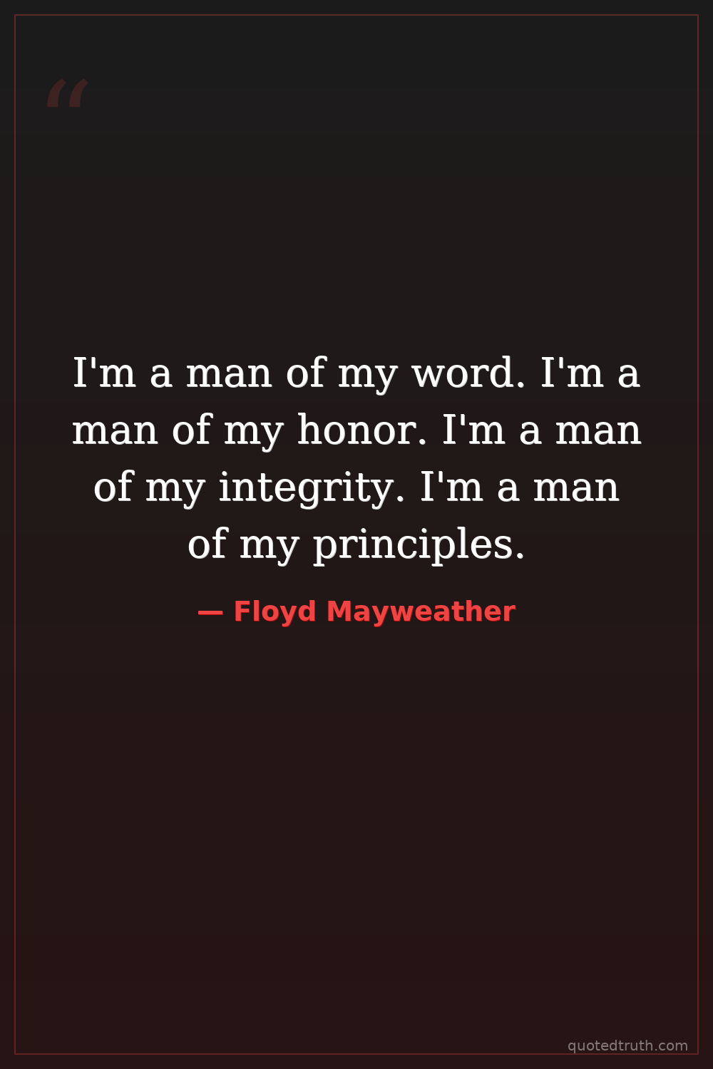 I'm a man of my word. I'm a man of my honor. I'm a man of my integrity. I'm a man of my principles.
