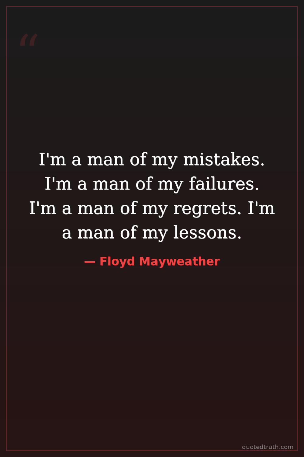 I'm a man of my mistakes. I'm a man of my failures. I'm a man of my regrets. I'm a man of my lessons.