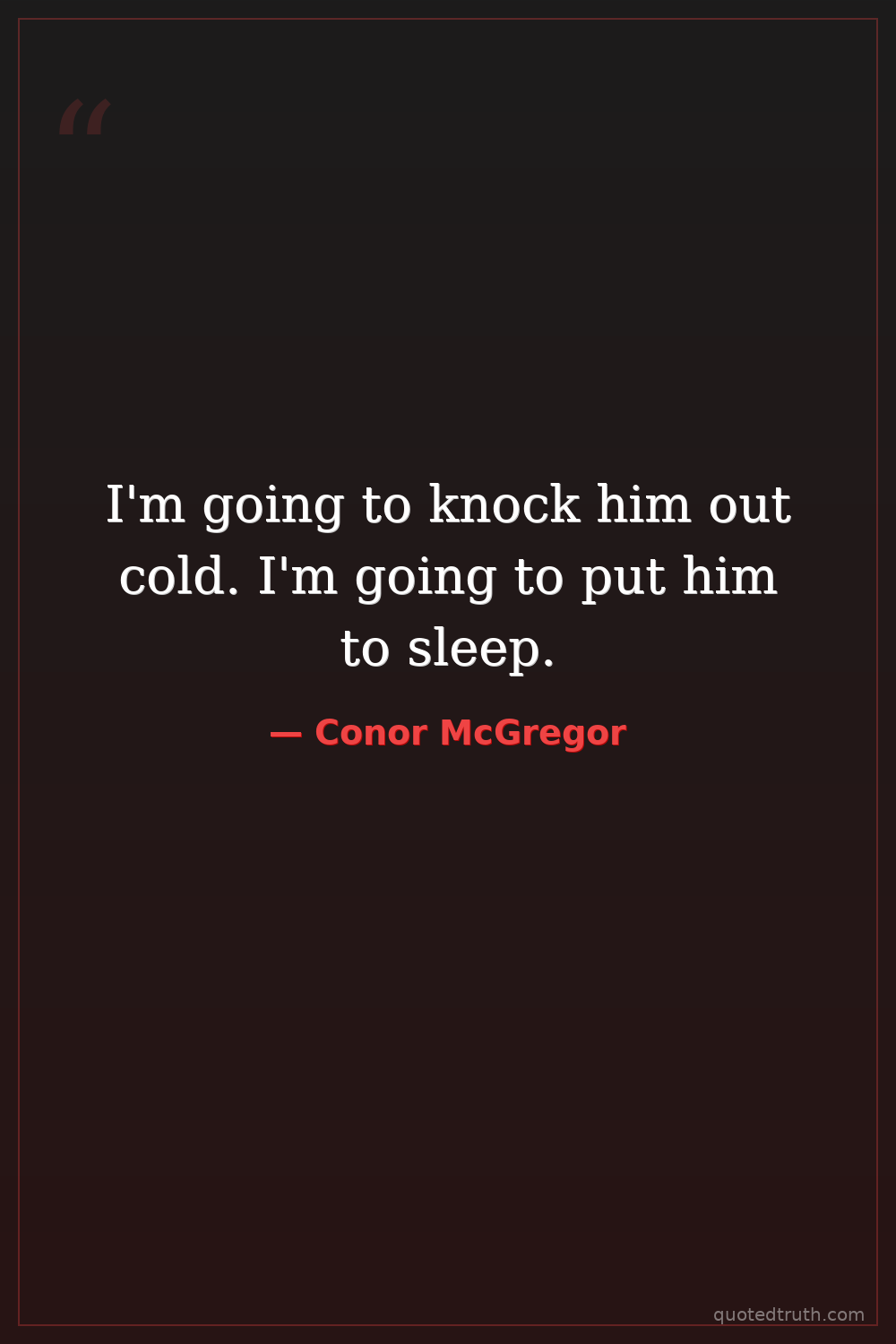 I'm going to knock him out cold. I'm going to put him to sleep.