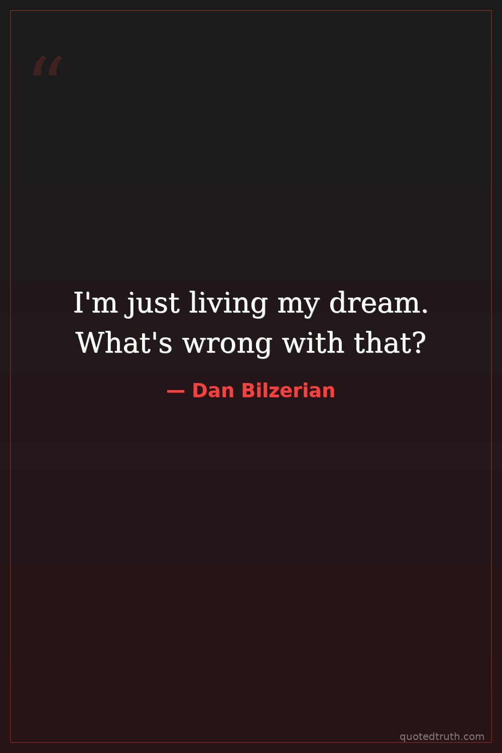 I'm just living my dream. What's wrong with that?