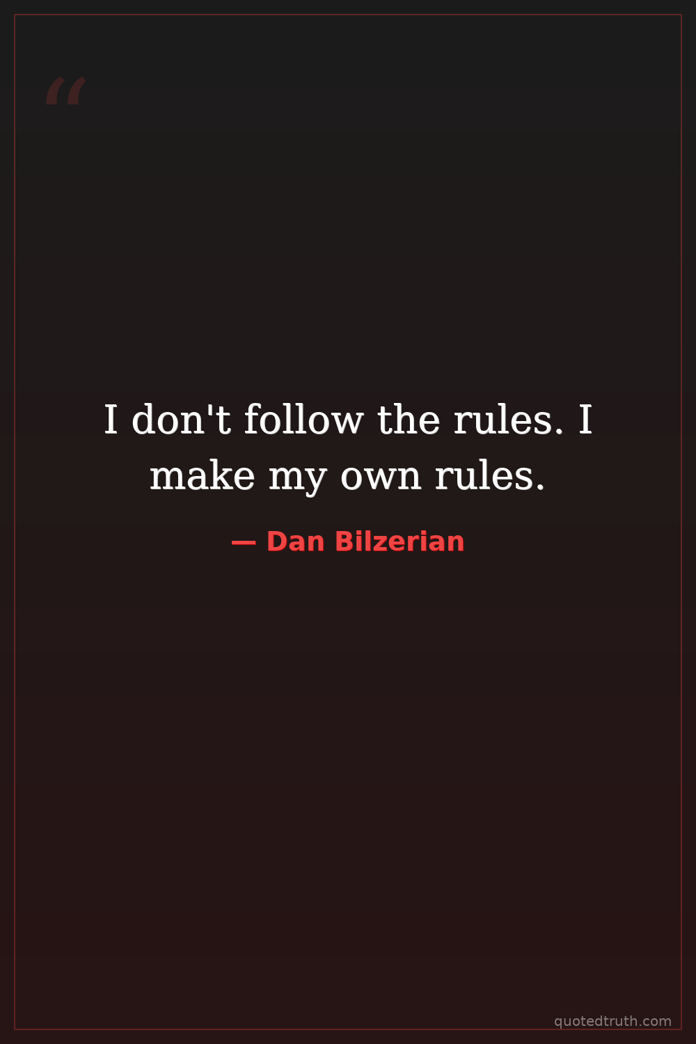 I don't follow the rules. I make my own rules.