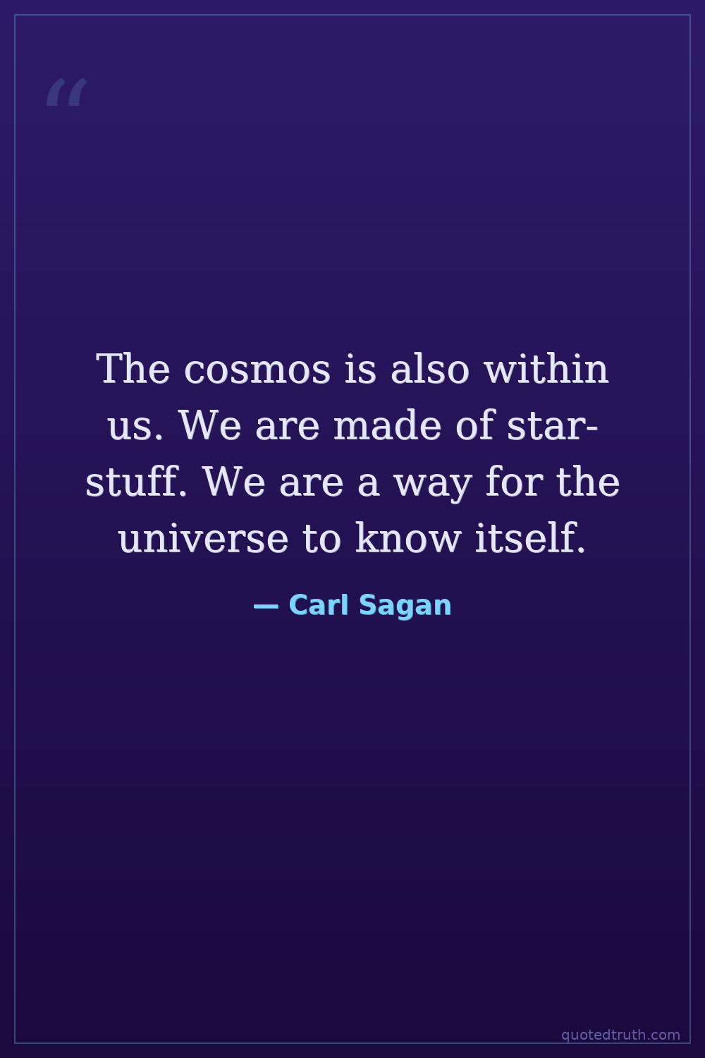 The cosmos is also within us. We are made of star-stuff. We are a way for the universe to know itself.