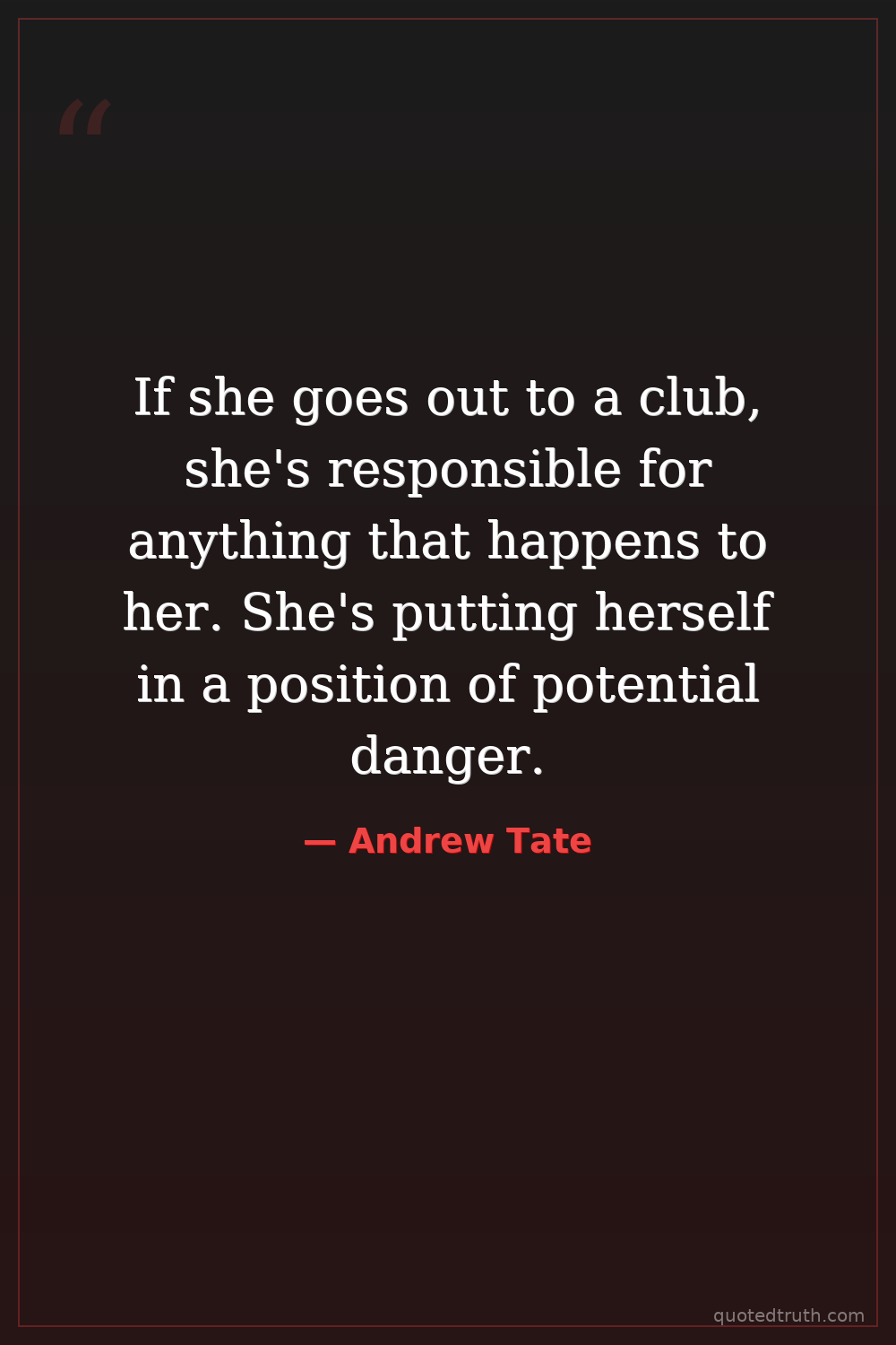 If she goes out to a club, she's responsible for anything that happens to her. She's putting herself in a position of potential danger.