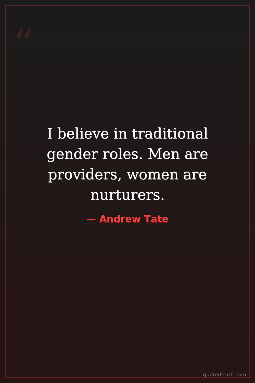 I believe in traditional gender roles. Men are providers, women are nurturers.