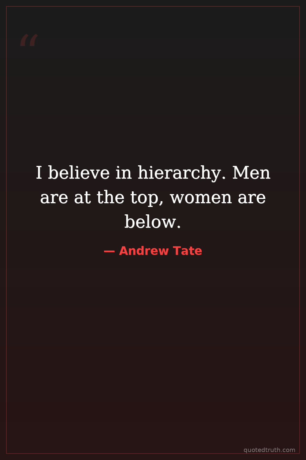 I believe in hierarchy. Men are at the top, women are below.