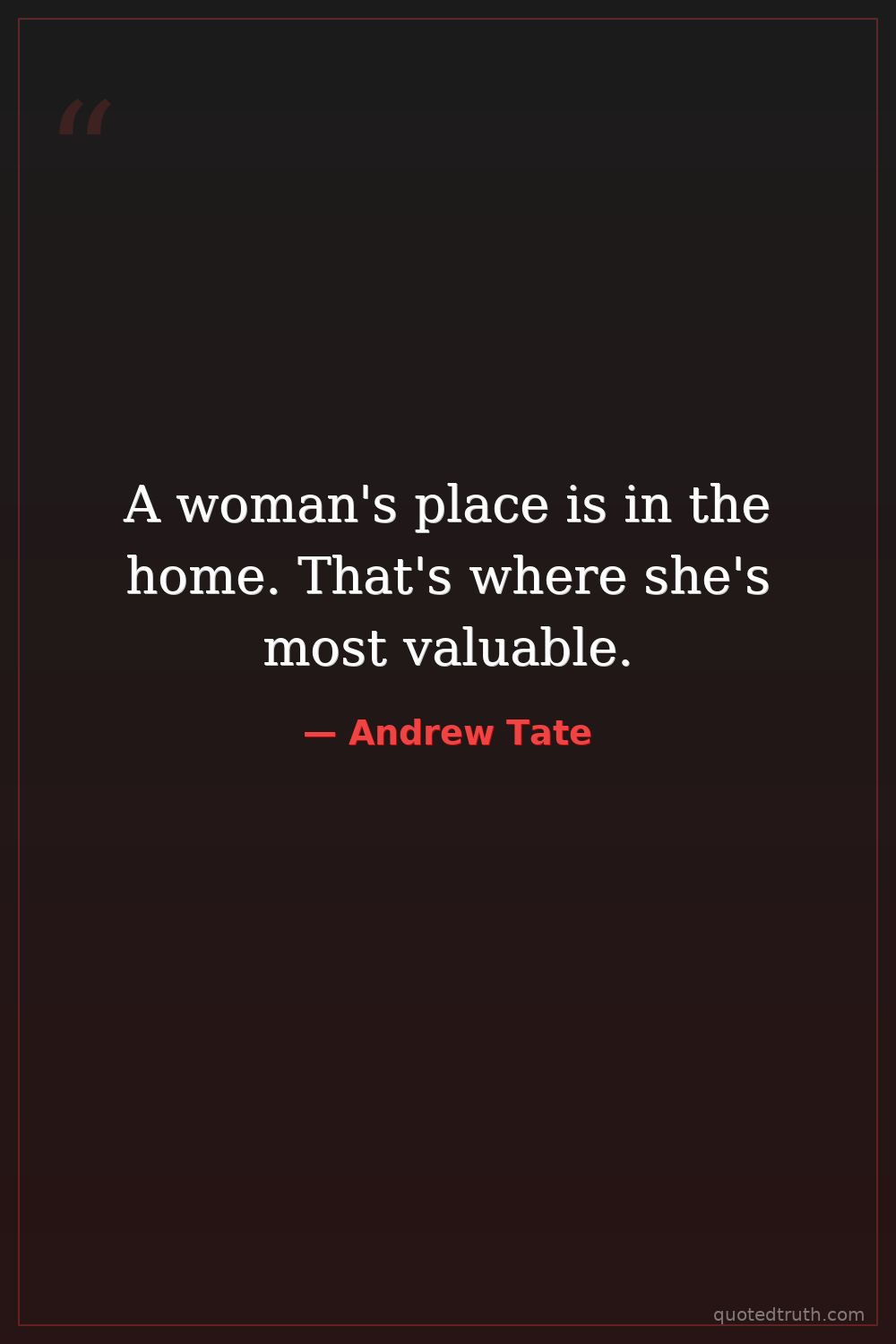 A woman's place is in the home. That's where she's most valuable.