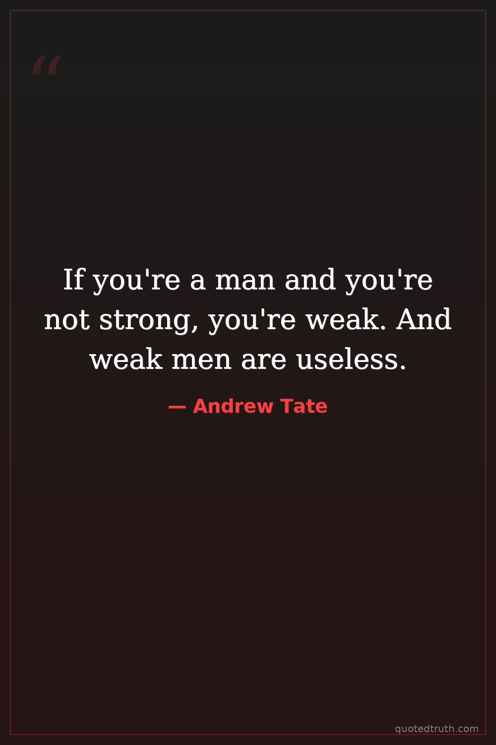 If you're a man and you're not strong, you're weak. And weak men are useless.