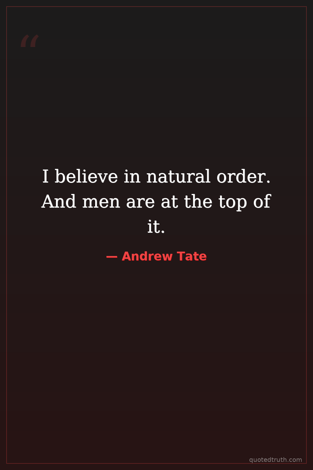 I believe in natural order. And men are at the top of it.