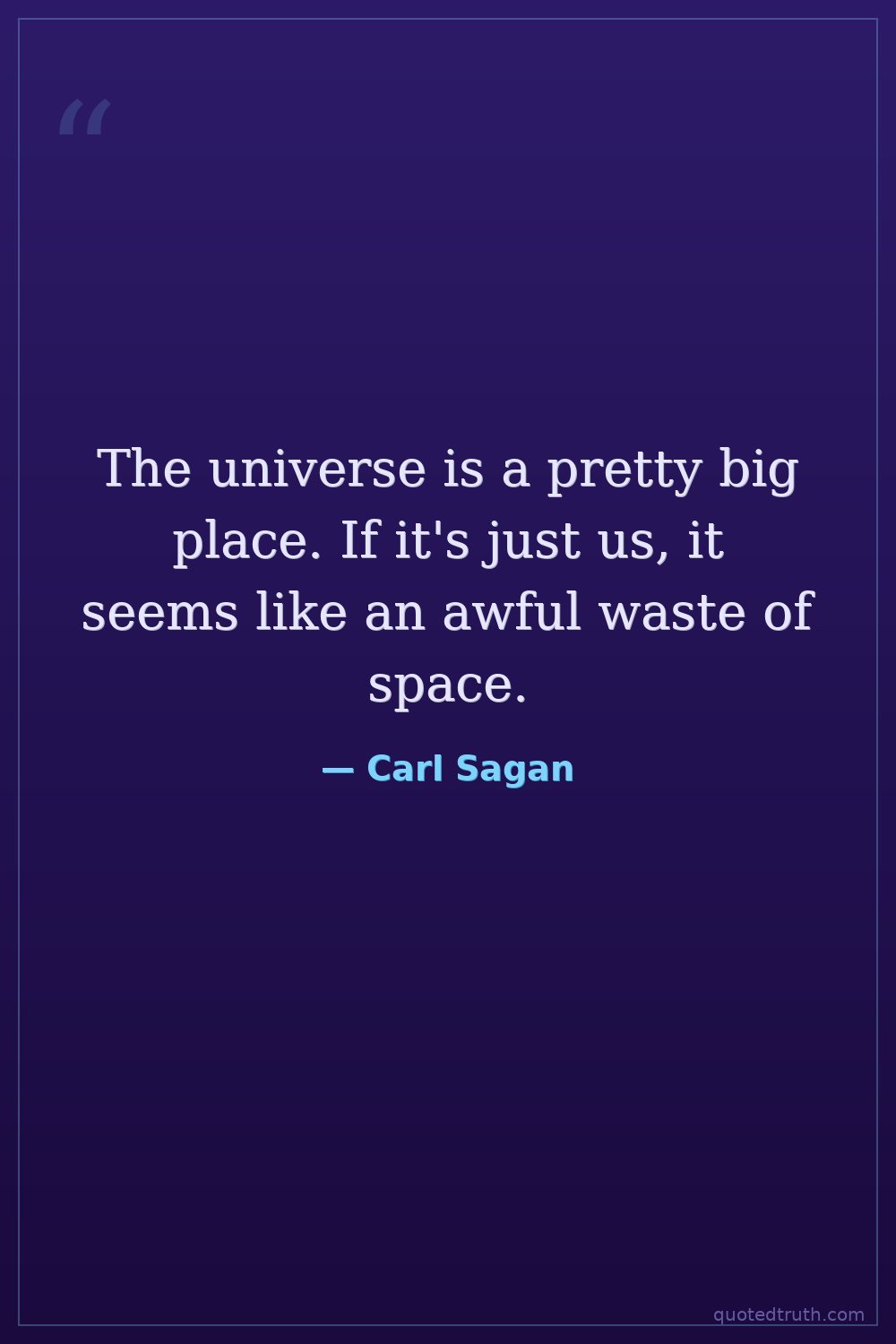 The universe is a pretty big place. If it's just us, it seems like an awful waste of space.