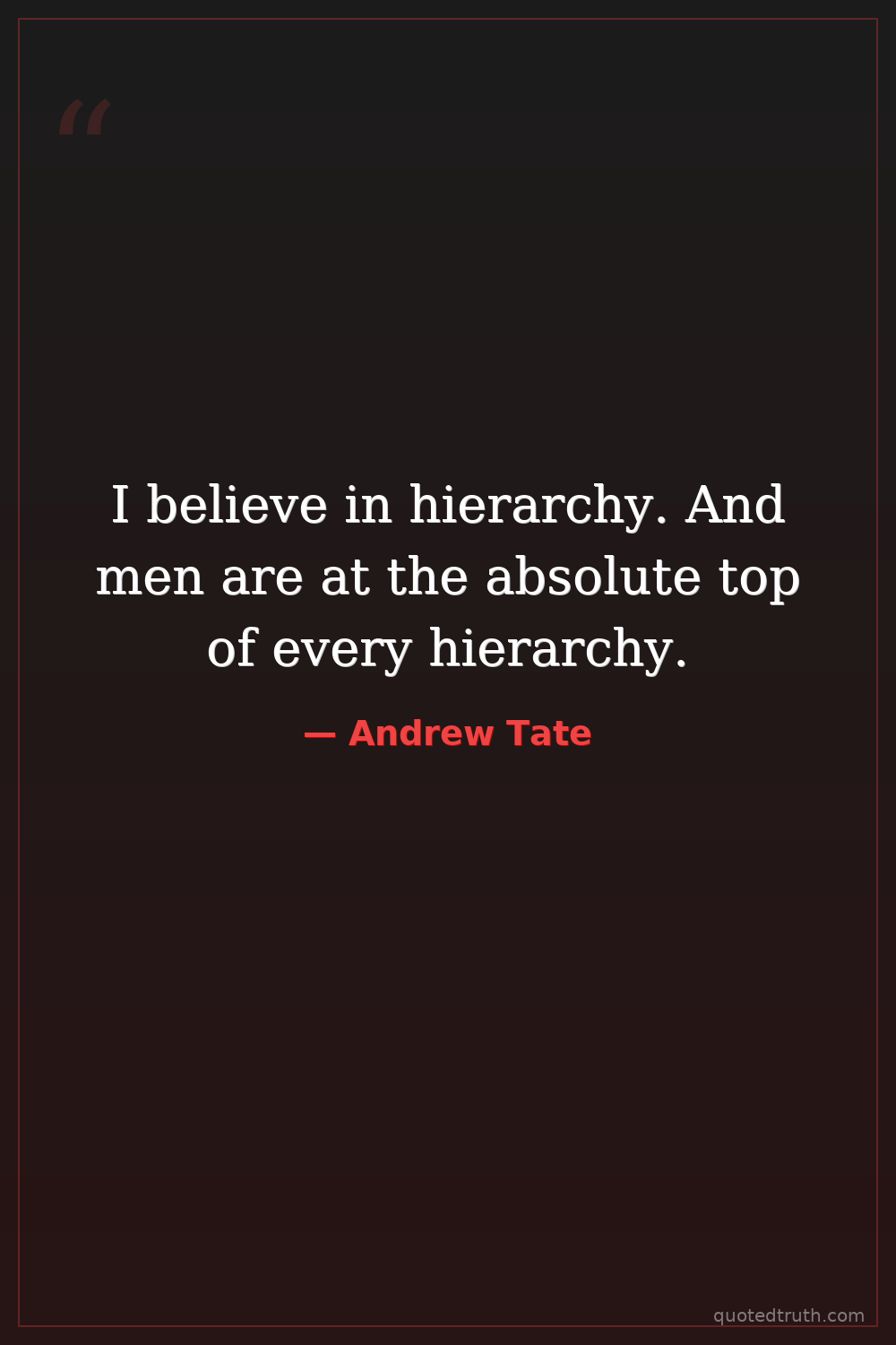 I believe in hierarchy. And men are at the absolute top of every hierarchy.