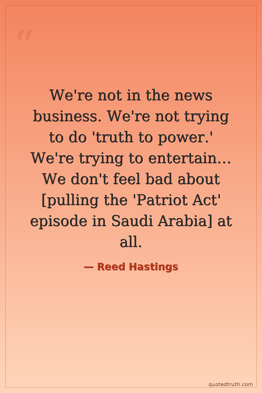 We're not in the news business. We're not trying to do 'truth to power.' We're trying to entertain… We don't feel bad about [pulling the 'Patriot Act' episode in Saudi Arabia] at all.