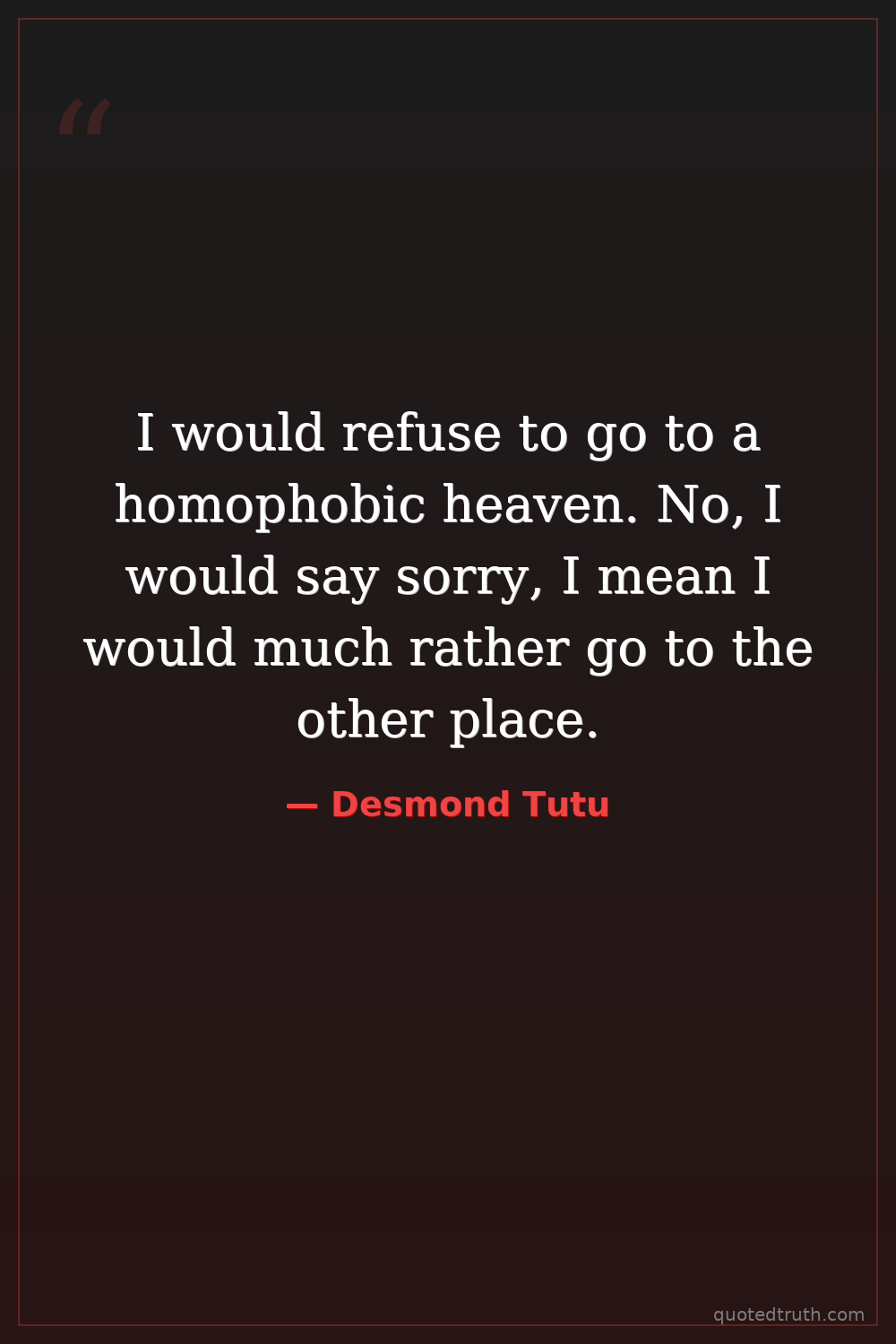 I would refuse to go to a homophobic heaven. No, I would say sorry, I mean I would much rather go to the other place.