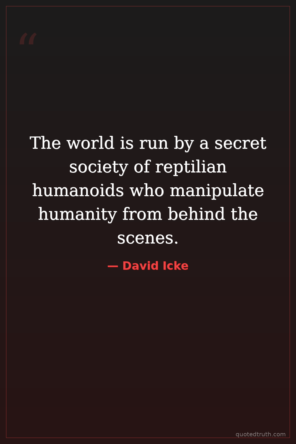 The world is run by a secret society of reptilian humanoids who manipulate humanity from behind the scenes.
