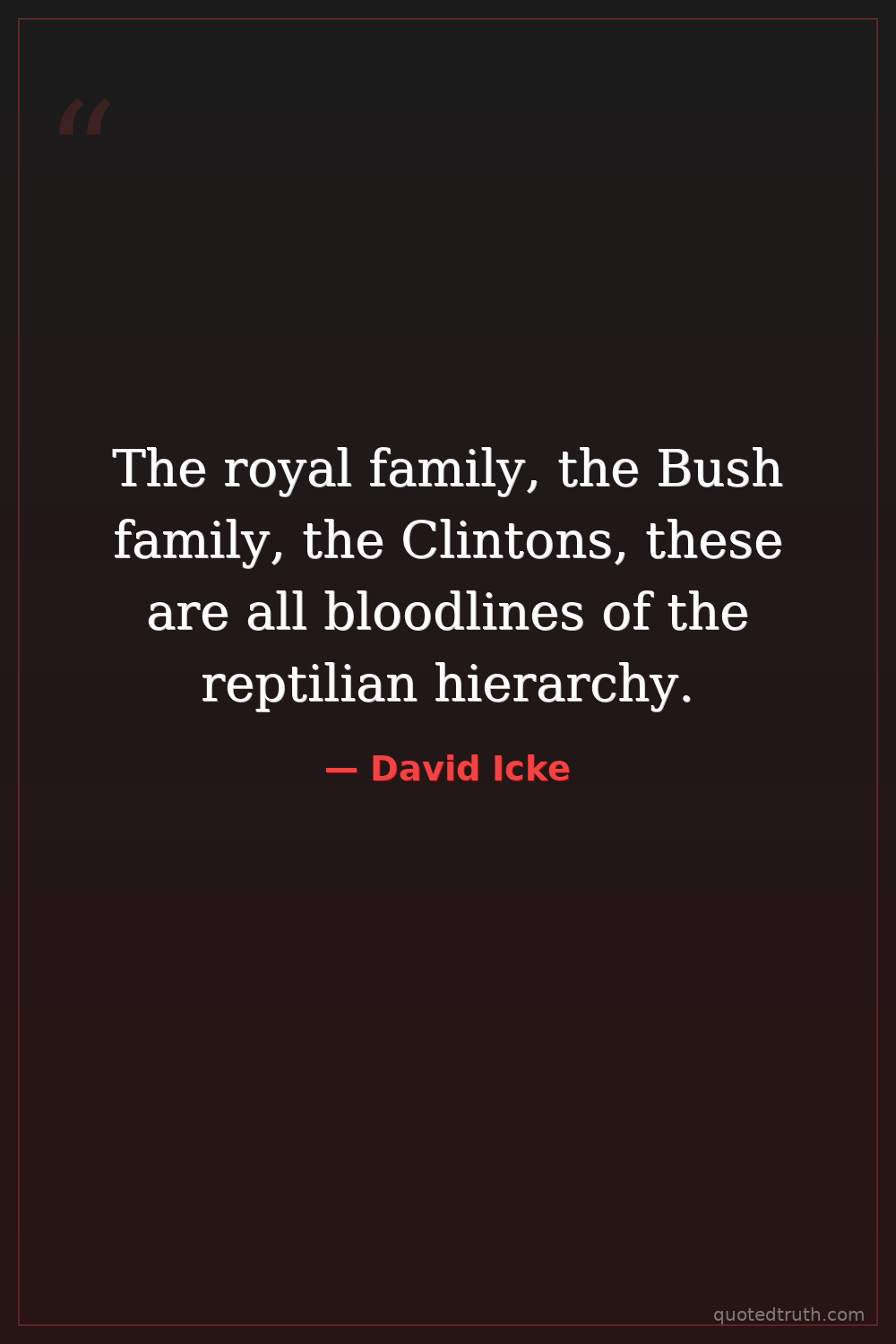 The royal family, the Bush family, the Clintons, these are all bloodlines of the reptilian hierarchy.