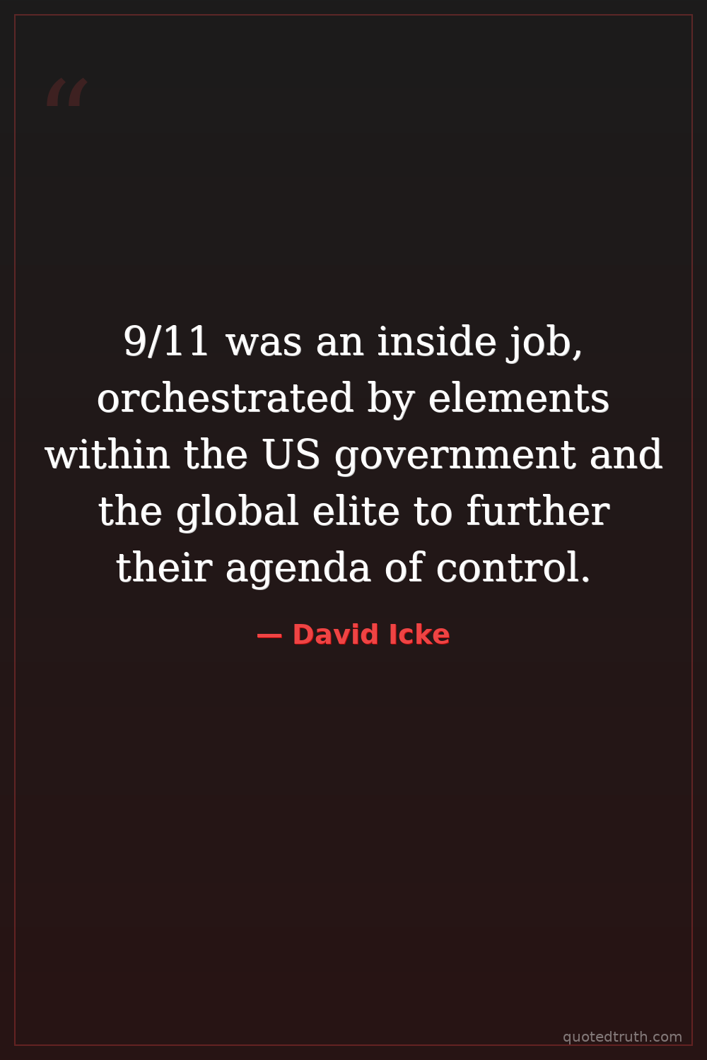 9/11 was an inside job, orchestrated by elements within the US government and the global elite to further their agenda of control.
