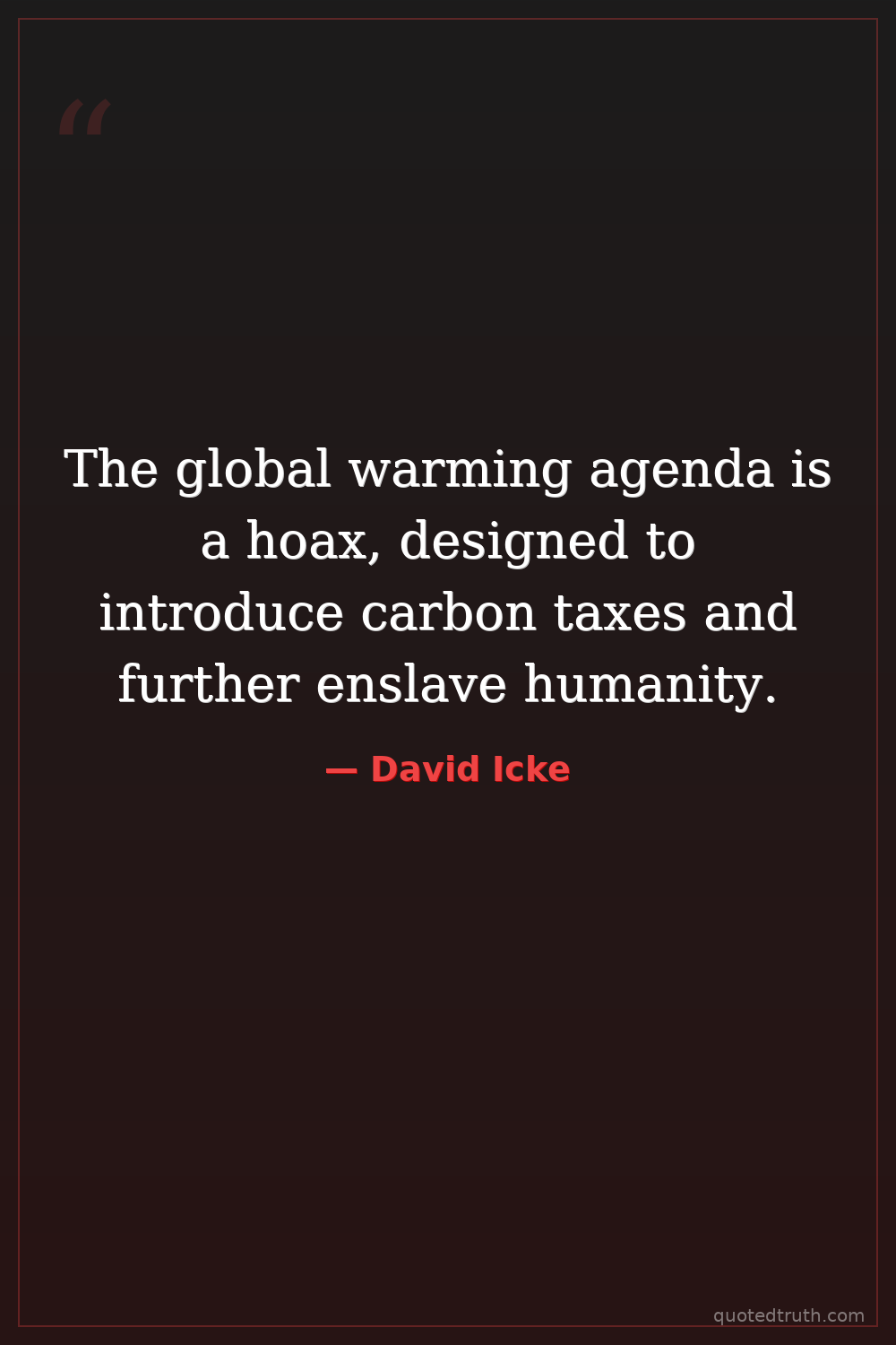 The global warming agenda is a hoax, designed to introduce carbon taxes and further enslave humanity.