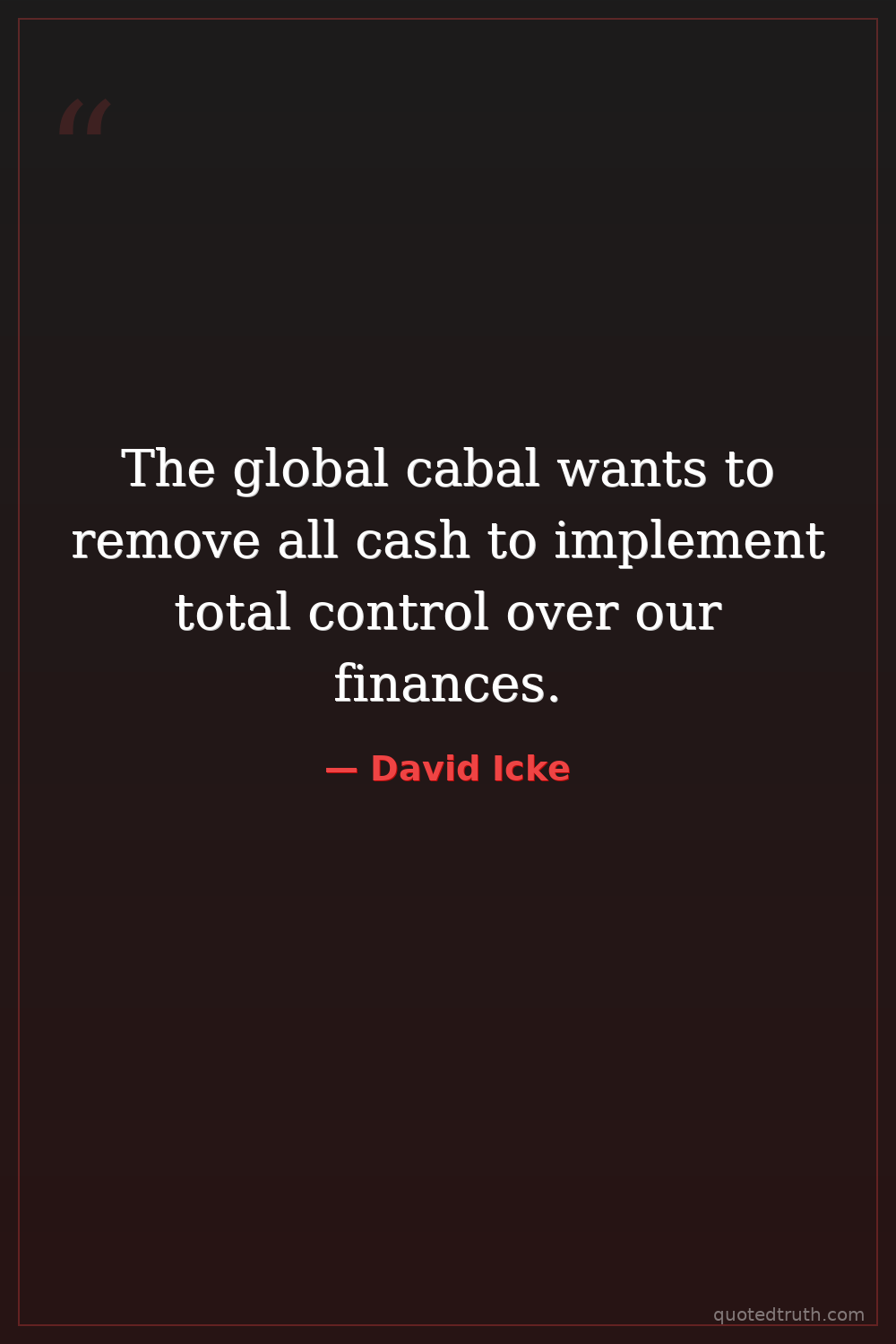 The global cabal wants to remove all cash to implement total control over our finances.