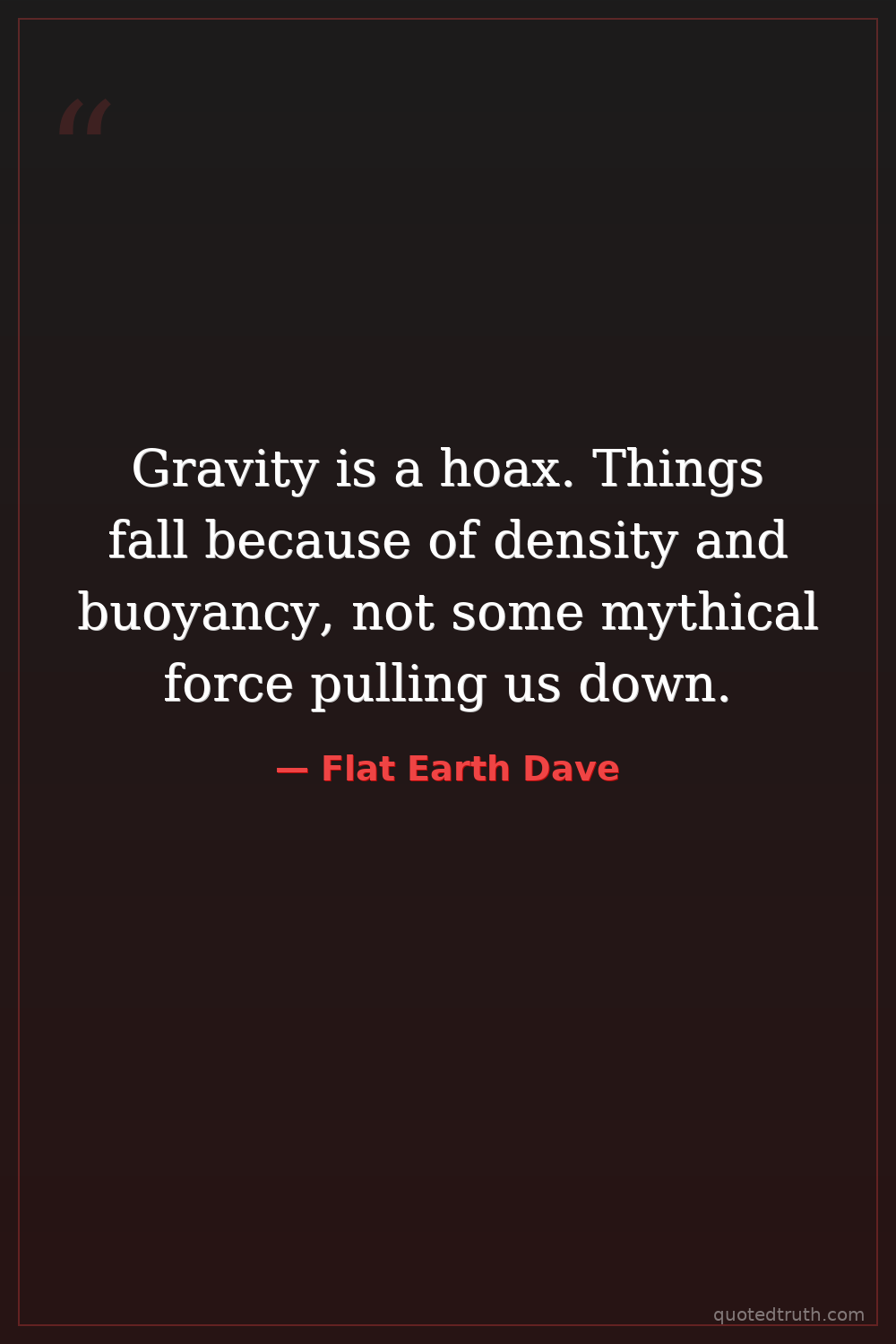 Gravity is a hoax. Things fall because of density and buoyancy, not some mythical force pulling us down.