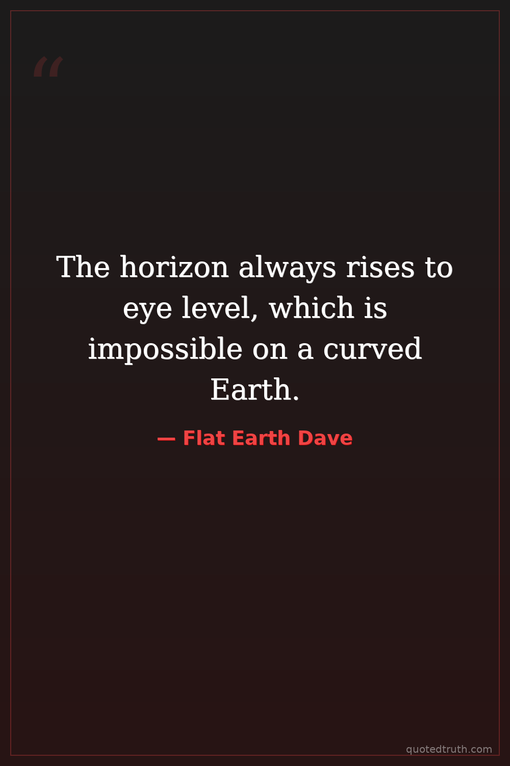 The horizon always rises to eye level, which is impossible on a curved Earth.