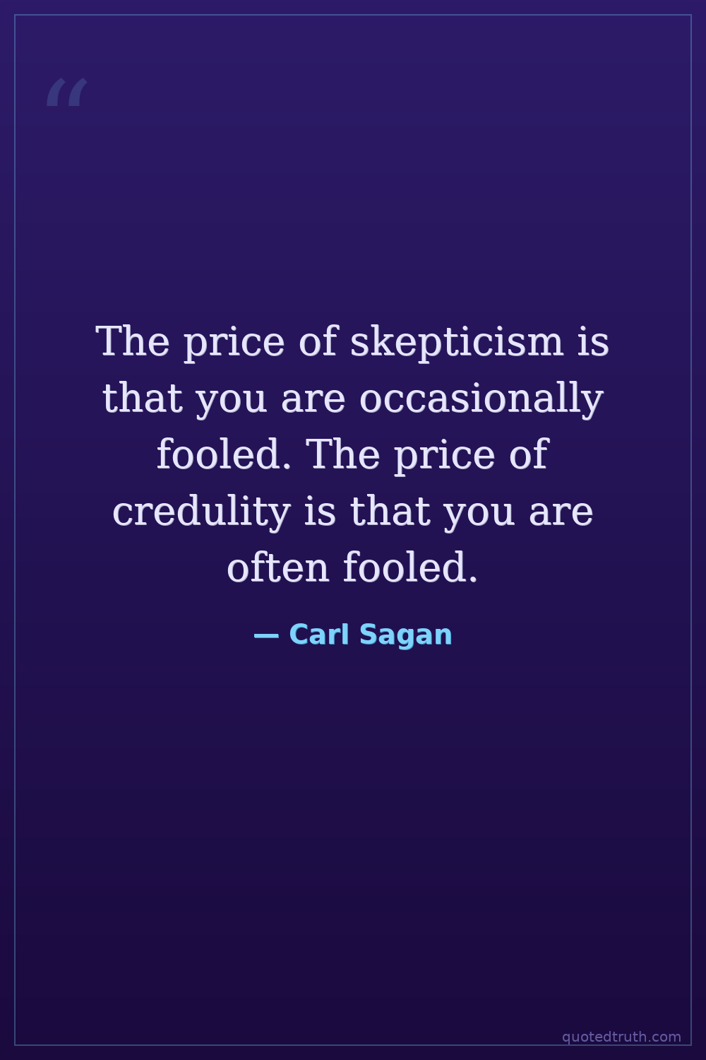 The price of skepticism is that you are occasionally fooled. The price of credulity is that you are often fooled.