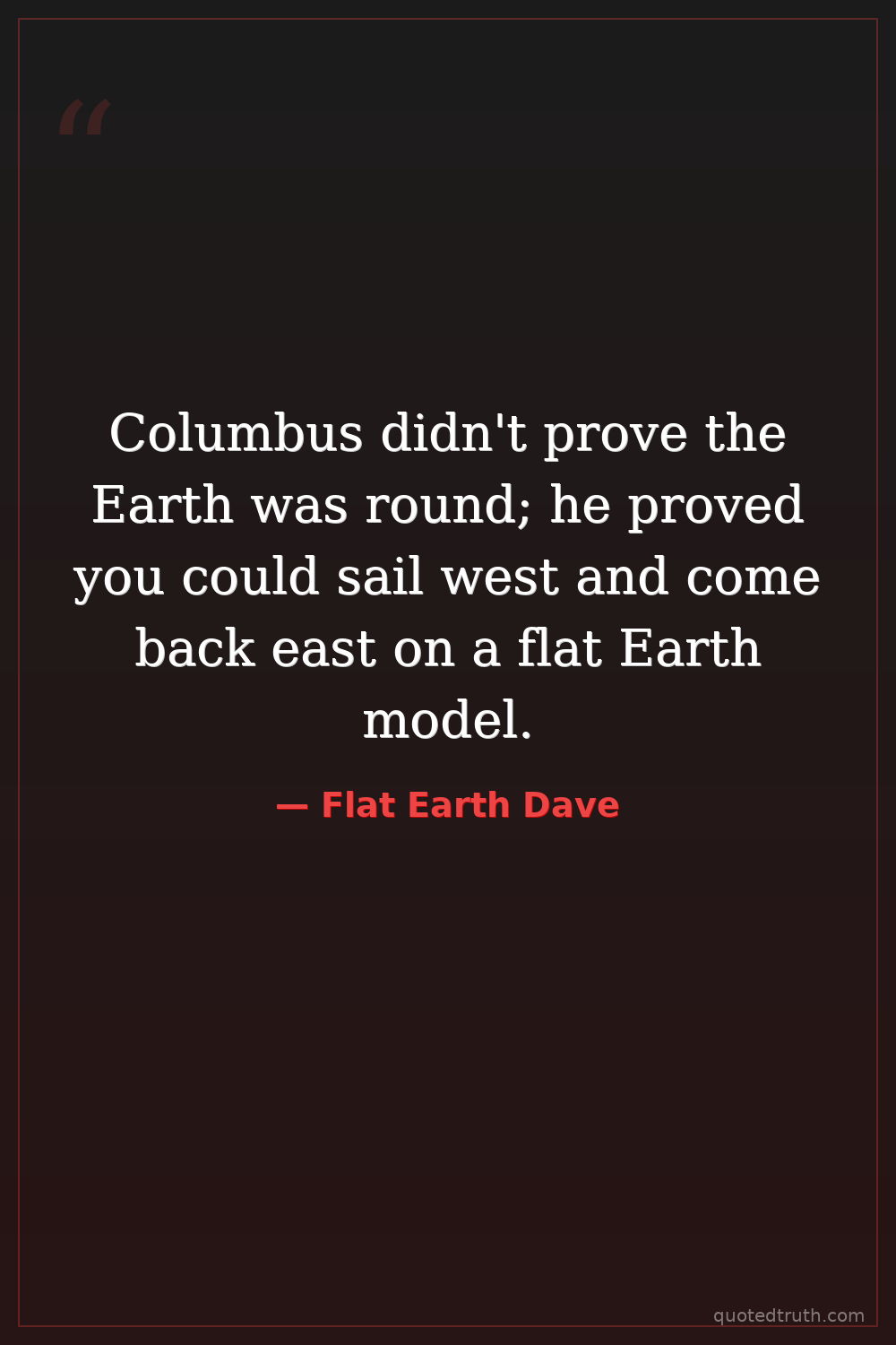 Humorous"The only reason you believe in the globe is because you were told to. Think for yourself!"