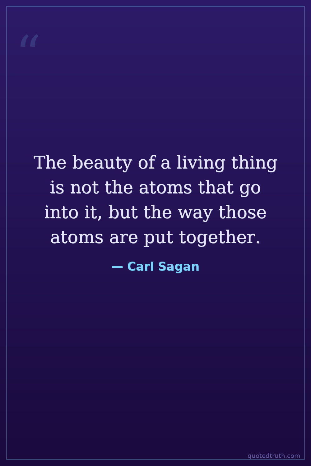 The beauty of a living thing is not the atoms that go into it, but the way those atoms are put together.