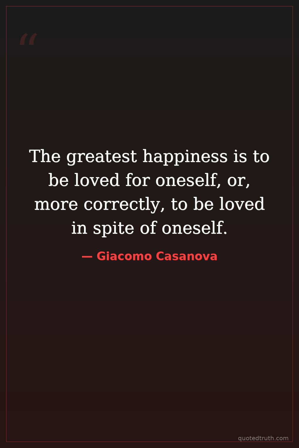 The greatest happiness is to be loved for oneself, or, more correctly, to be loved in spite of oneself.