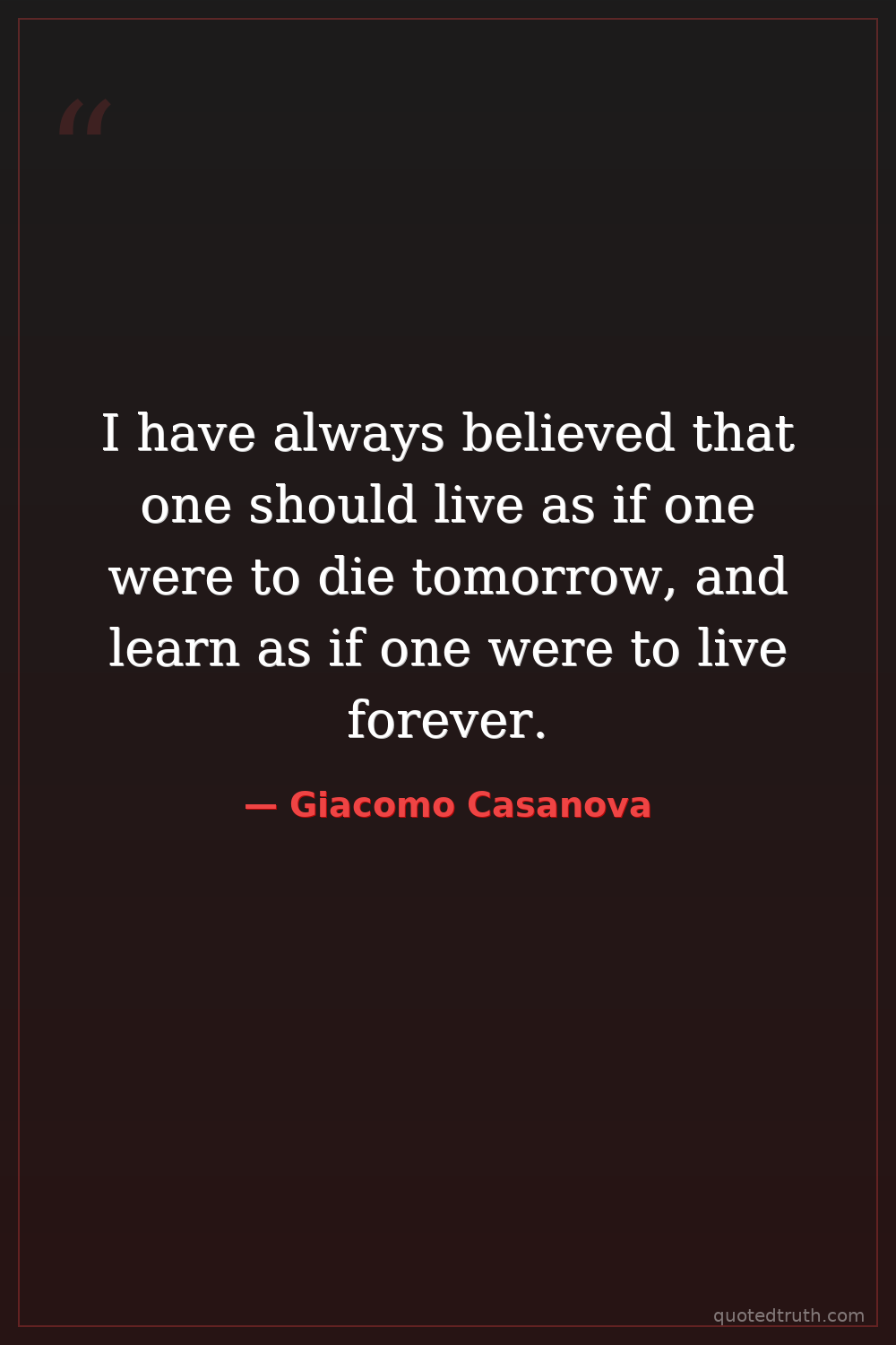 I have always believed that one should live as if one were to die tomorrow, and learn as if one were to live forever.