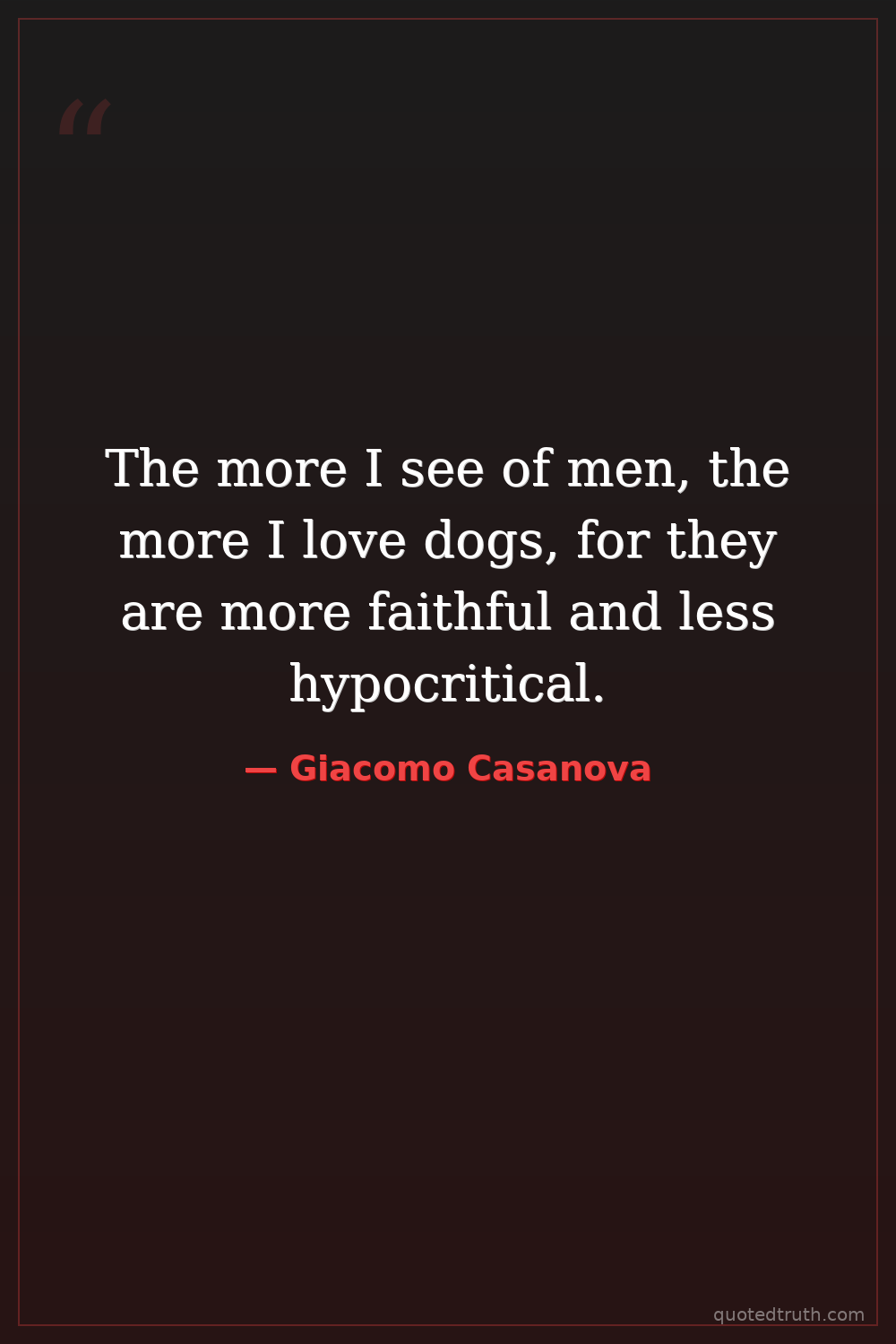 The more I see of men, the more I love dogs, for they are more faithful and less hypocritical.