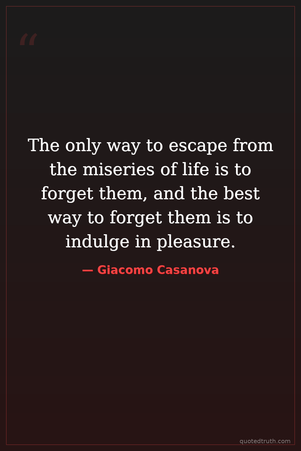 The only way to escape from the miseries of life is to forget them, and the best way to forget them is to indulge in pleasure.