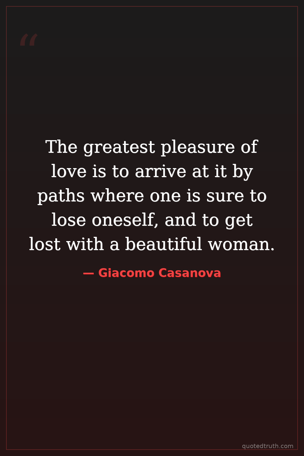 The greatest pleasure of love is to arrive at it by paths where one is sure to lose oneself, and to get lost with a beautiful woman.
