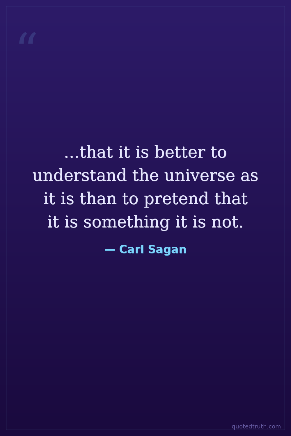 ...that it is better to understand the universe as it is than to pretend that it is something it is not.