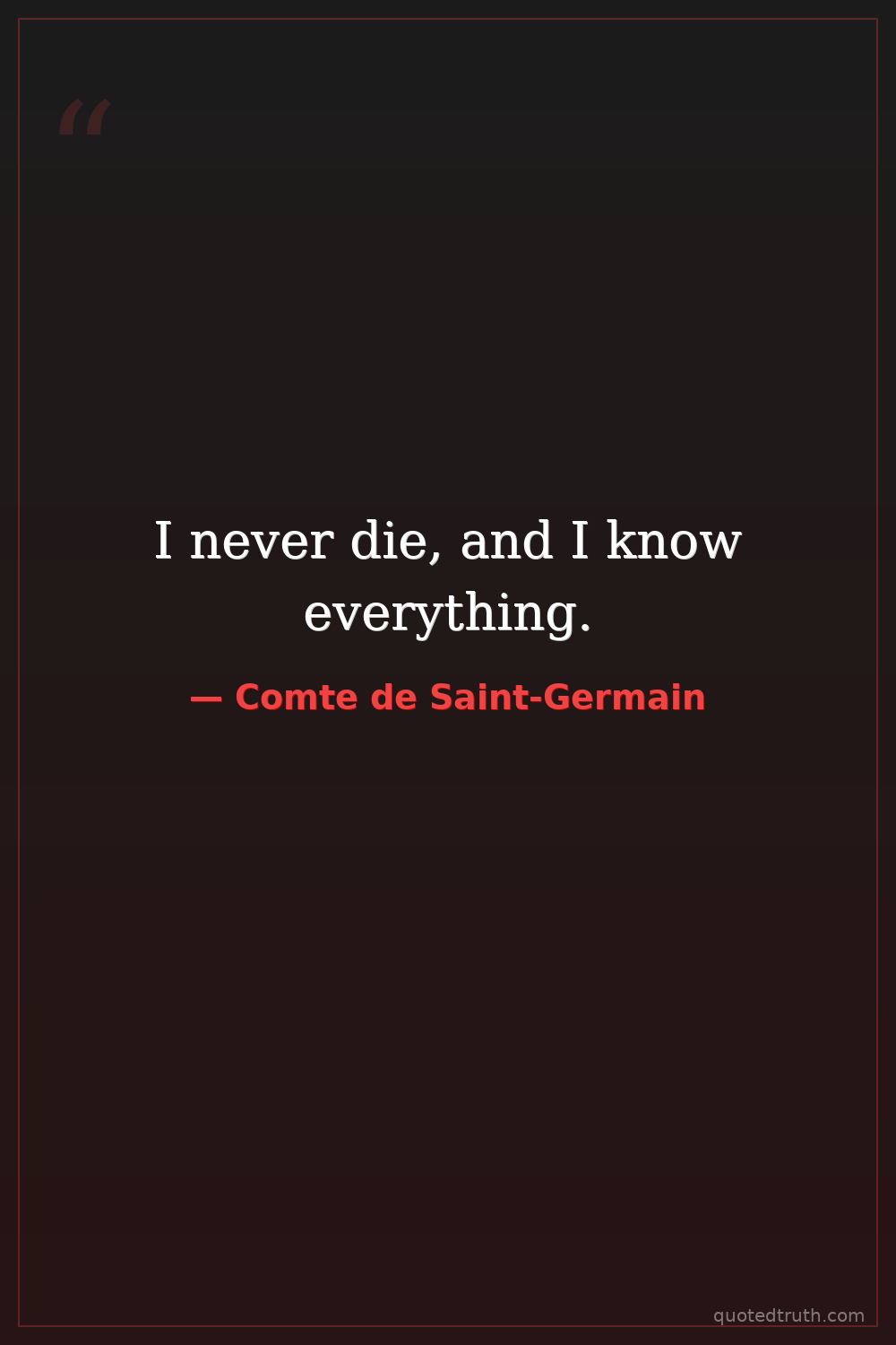 Strange & Unusual"Sometimes I amuse myself not by making people believe, but by letting them believe, that I have lived in the most remote ages."