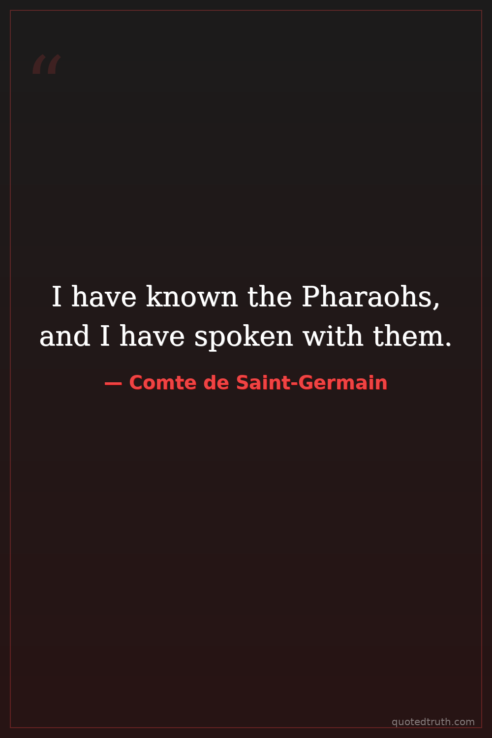 I have known the Pharaohs, and I have spoken with them.