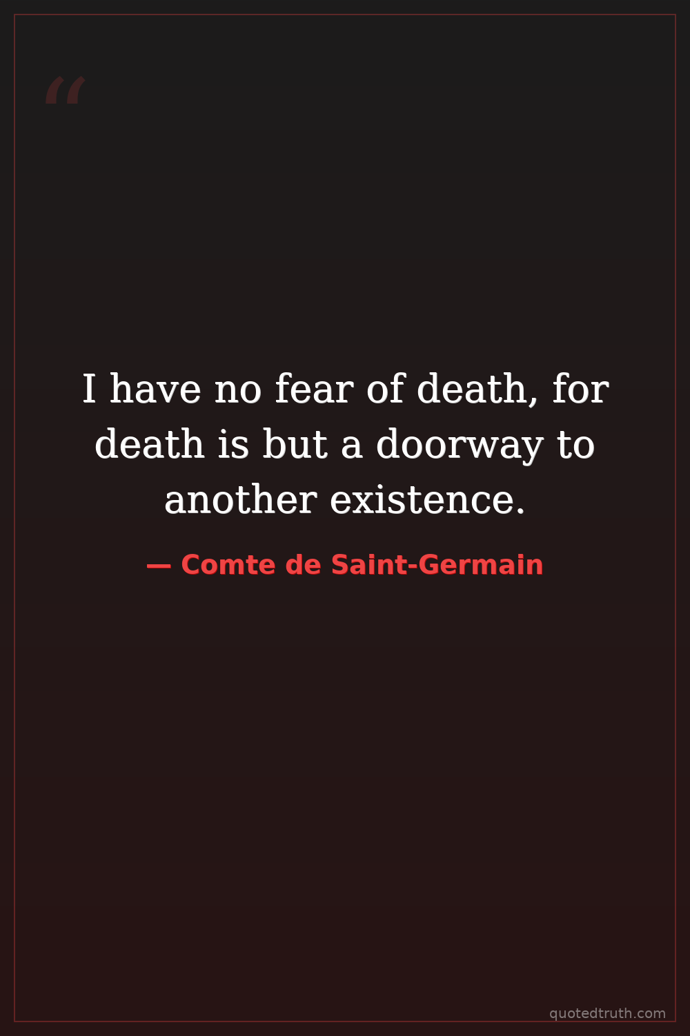 I have no fear of death, for death is but a doorway to another existence.