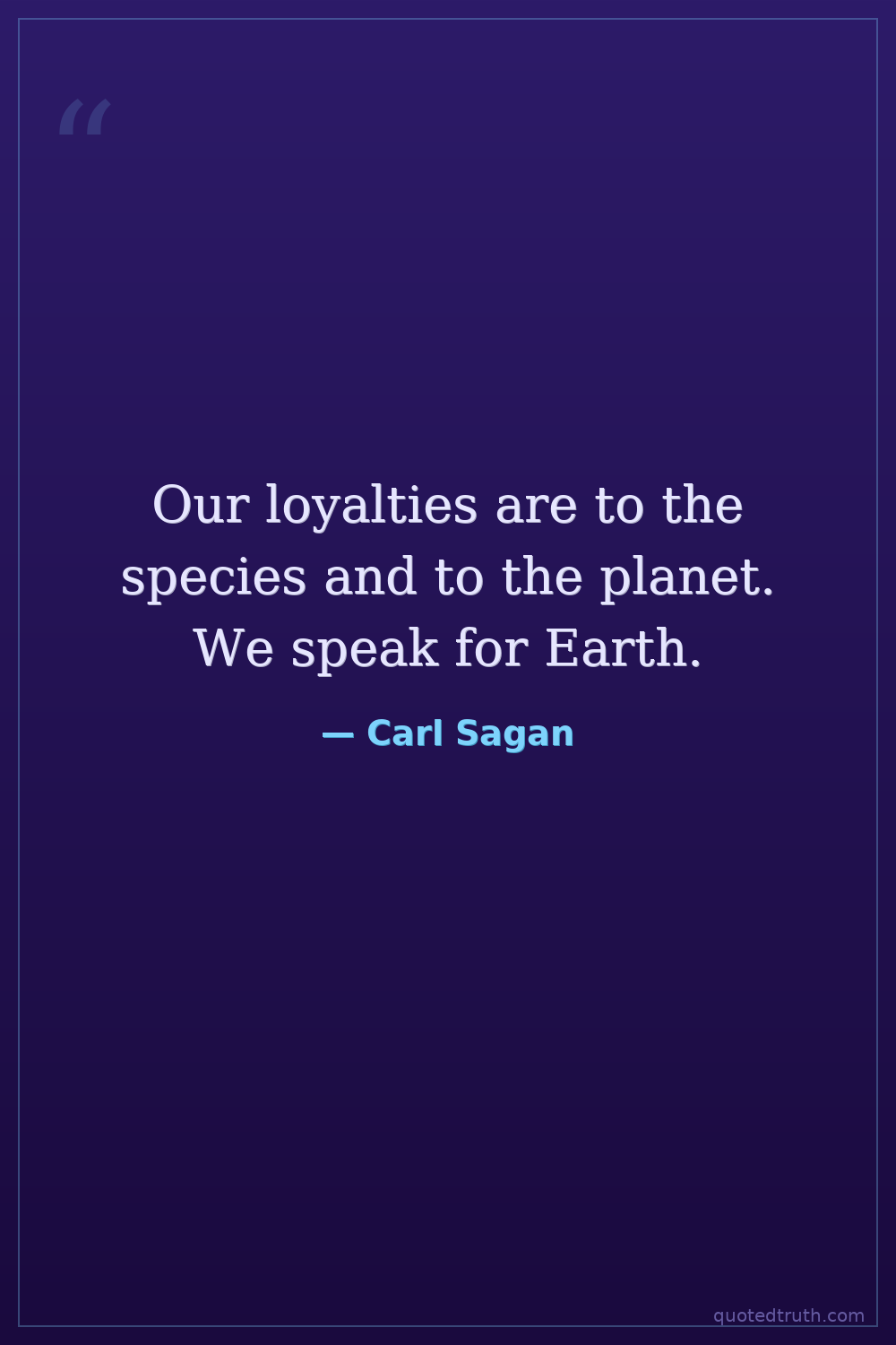 Our loyalties are to the species and to the planet. We speak for Earth.