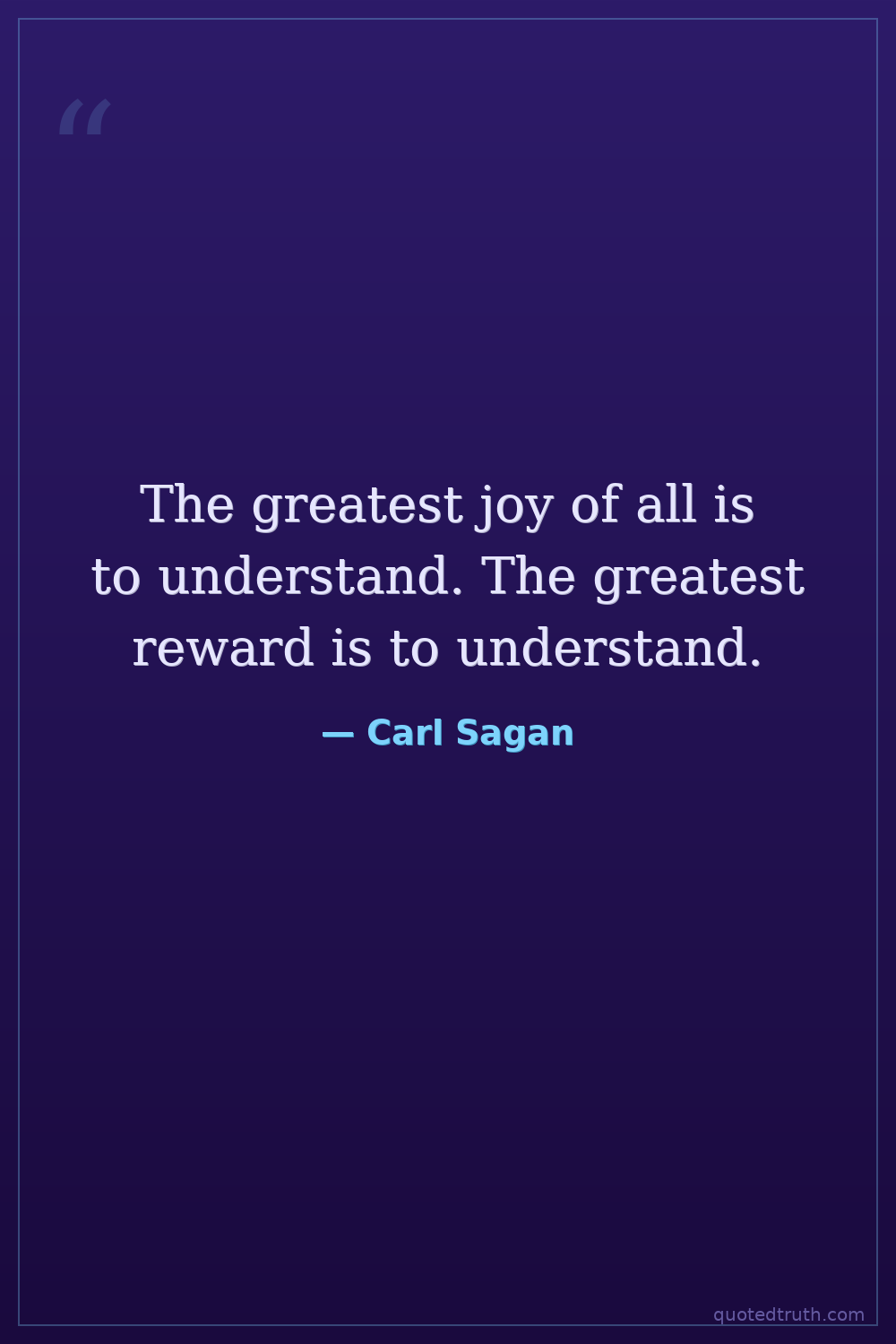 The greatest joy of all is to understand. The greatest reward is to understand.
