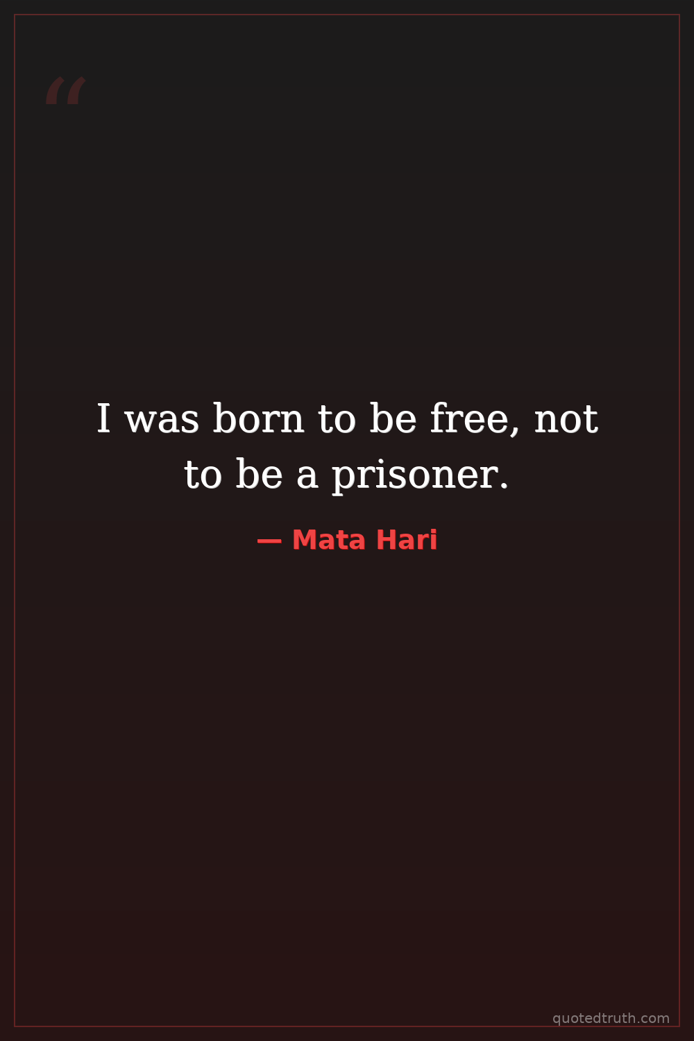 I was born to be free, not to be a prisoner.