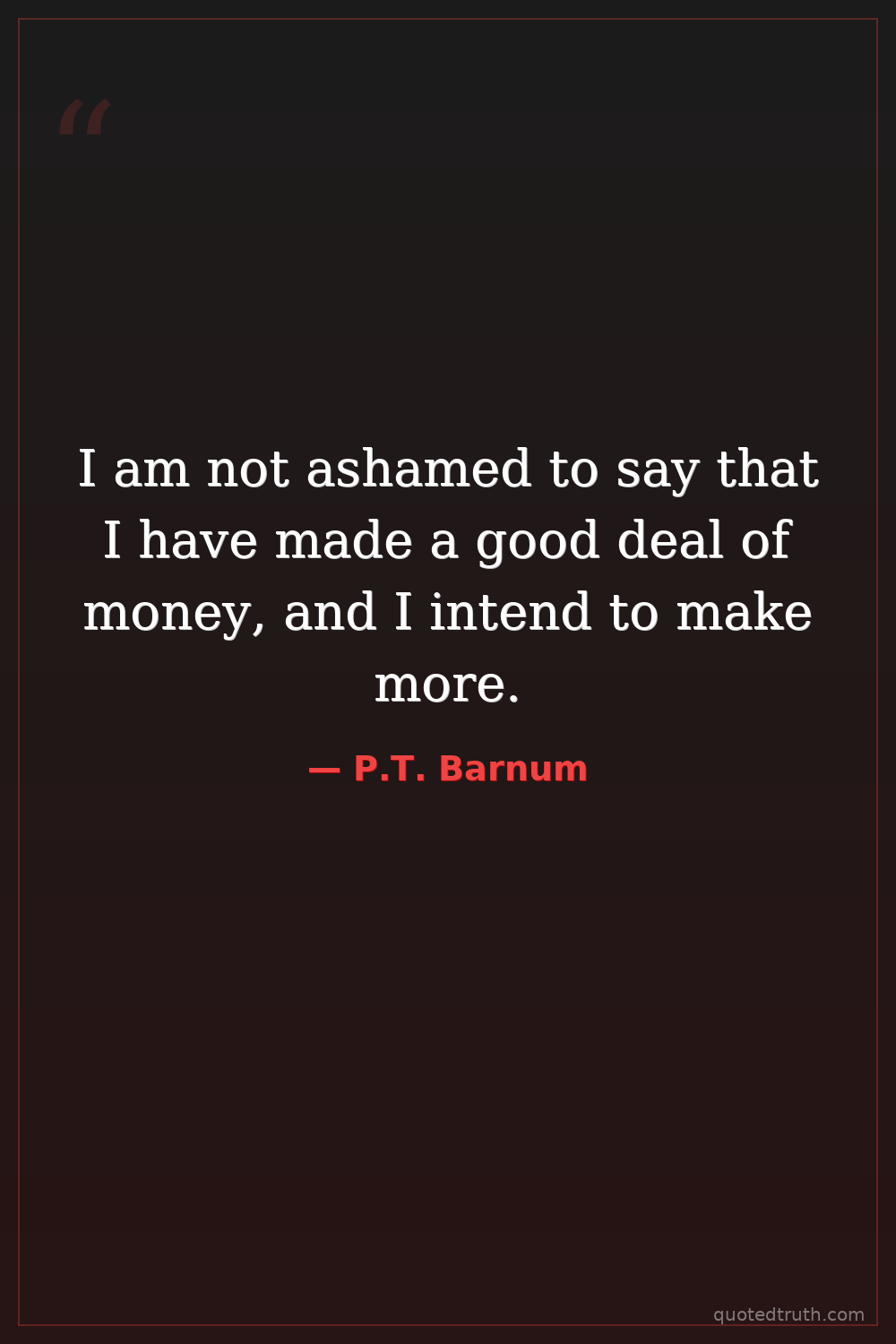 I am not ashamed to say that I have made a good deal of money, and I intend to make more.