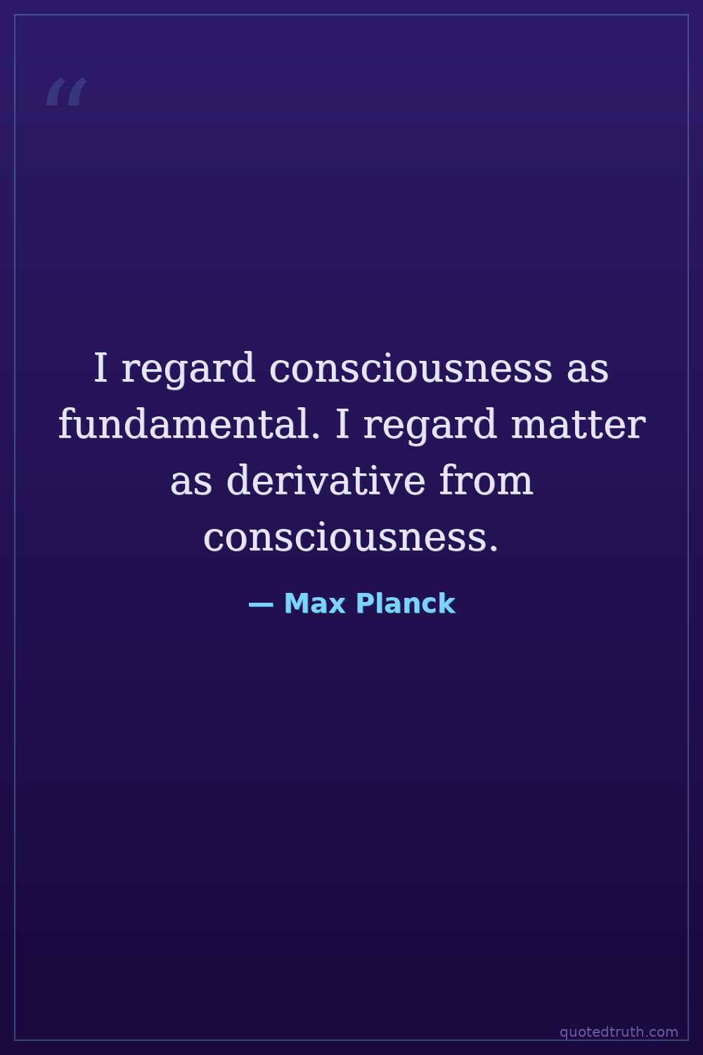 I regard consciousness as fundamental. I regard matter as derivative from consciousness.