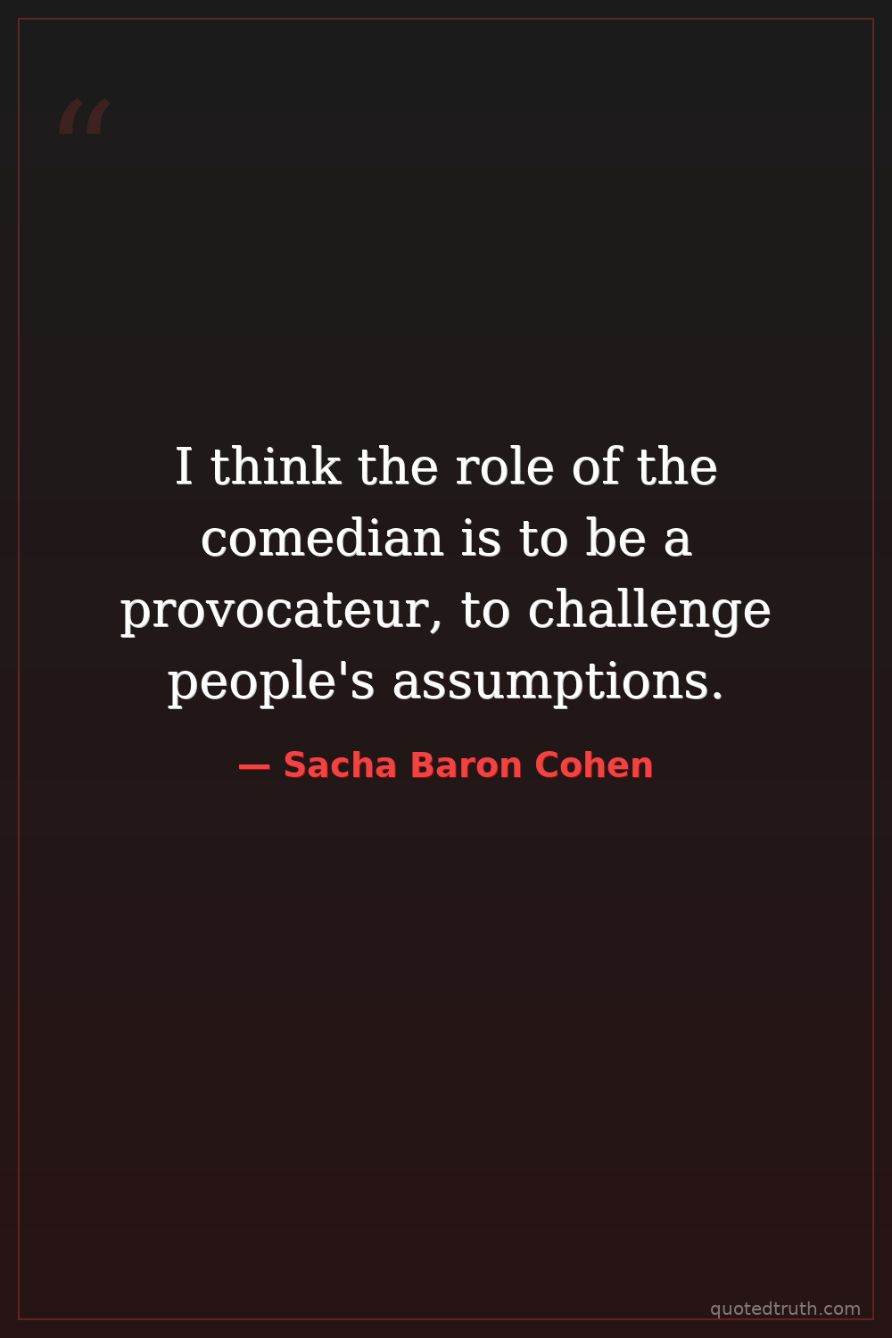 I think the role of the comedian is to be a provocateur, to challenge people's assumptions.