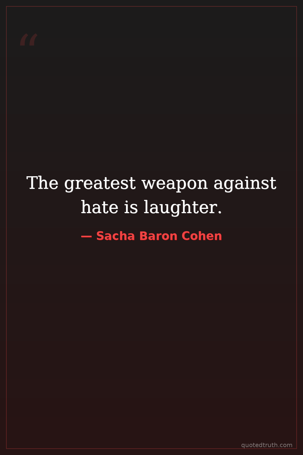The greatest weapon against hate is laughter.