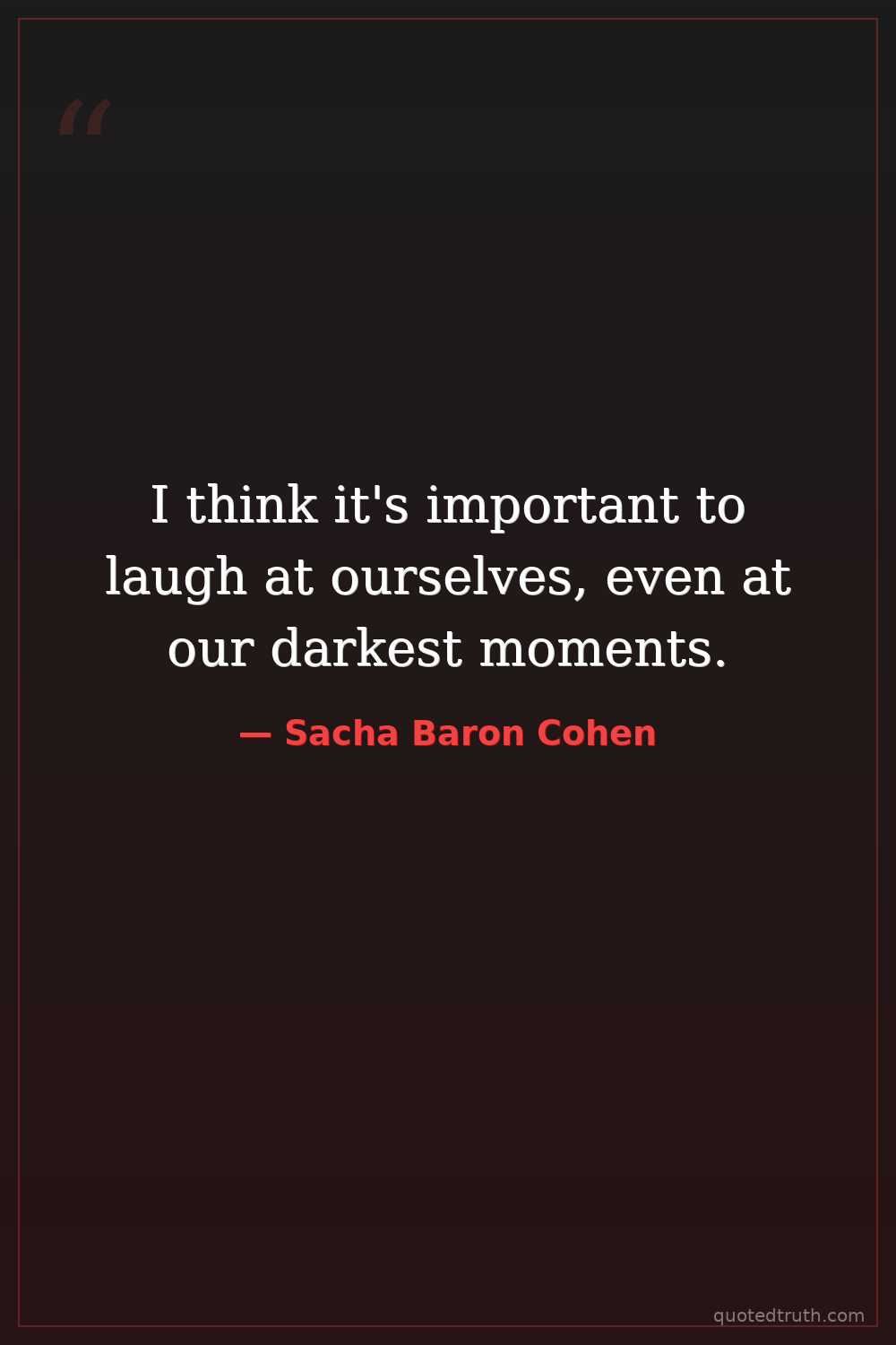 I think it's important to laugh at ourselves, even at our darkest moments.