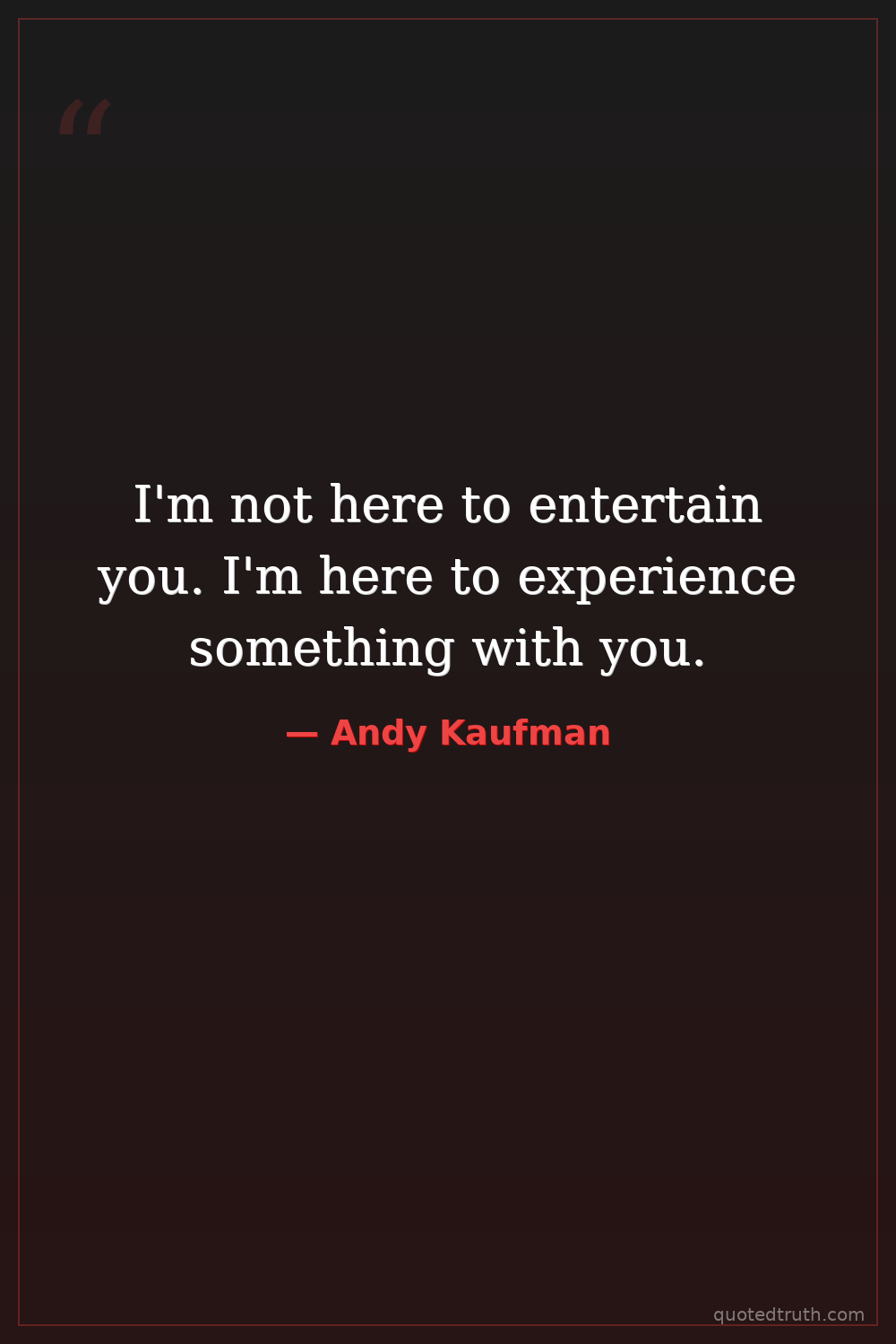 I'm not here to entertain you. I'm here to experience something with you.