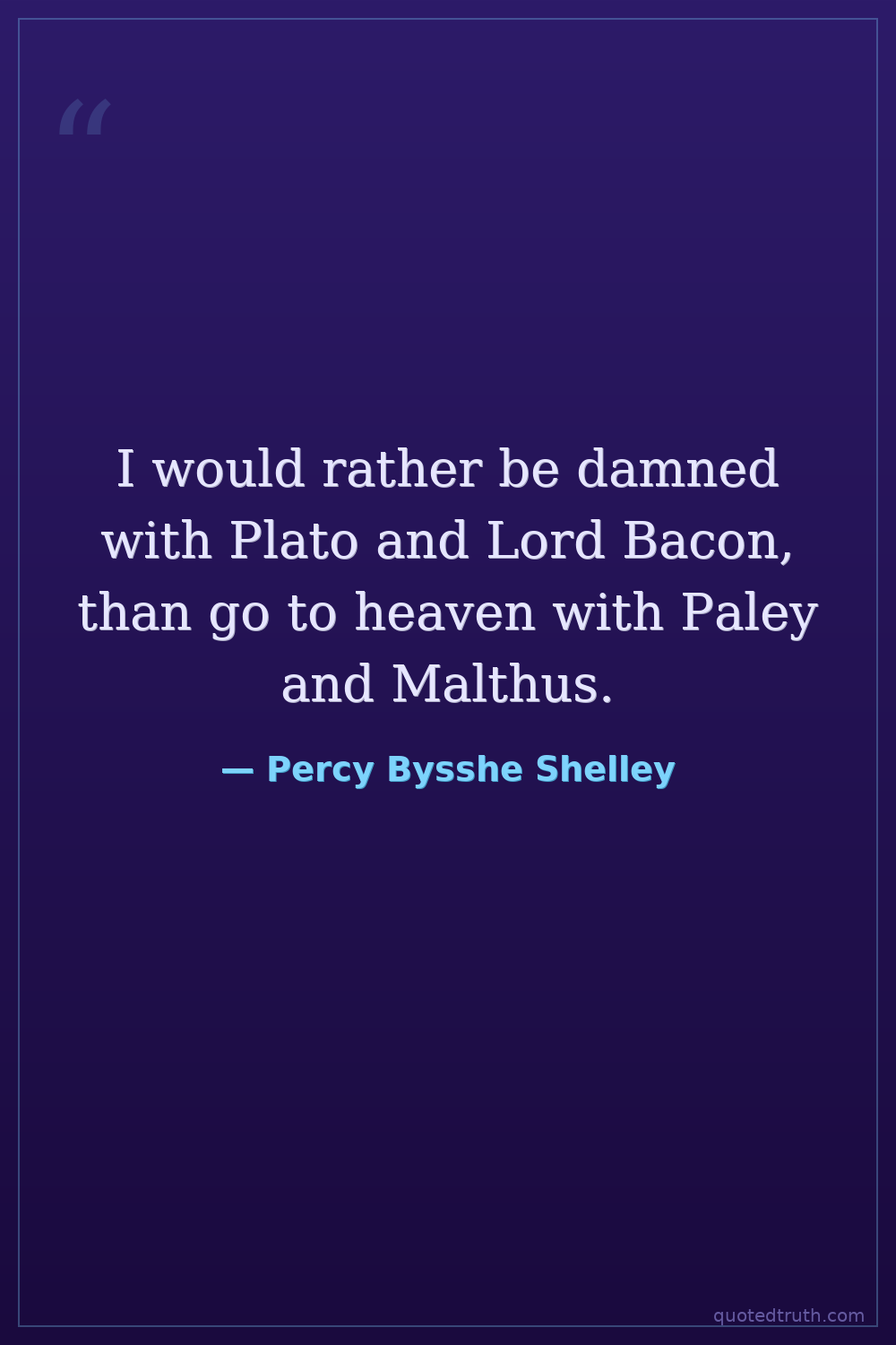 I would rather be damned with Plato and Lord Bacon, than go to heaven with Paley and Malthus.