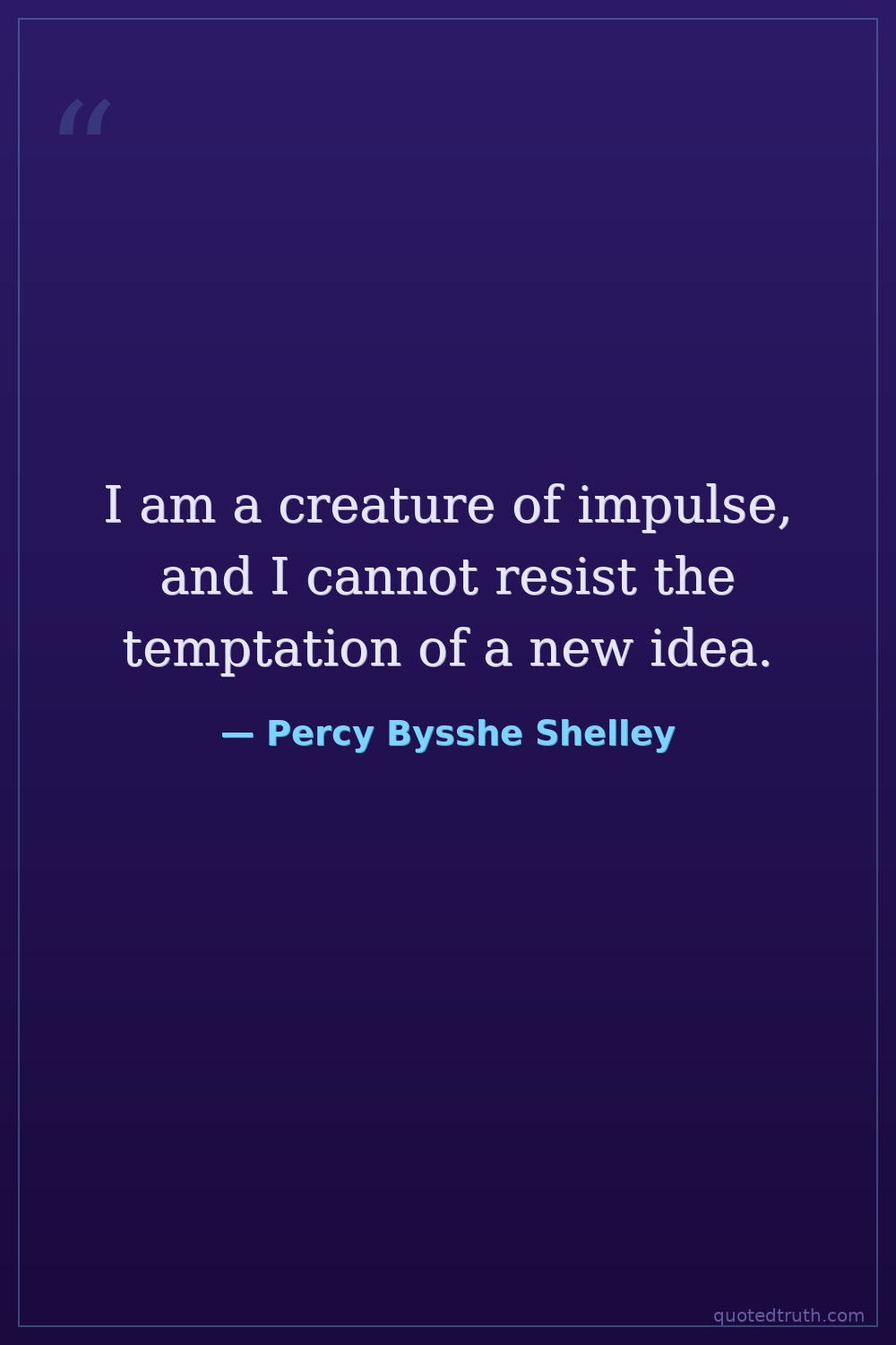 I am a creature of impulse, and I cannot resist the temptation of a new idea.